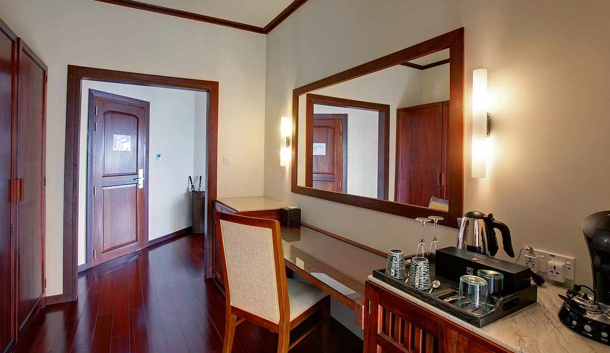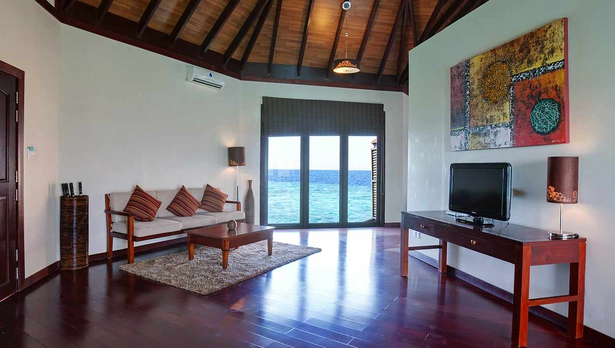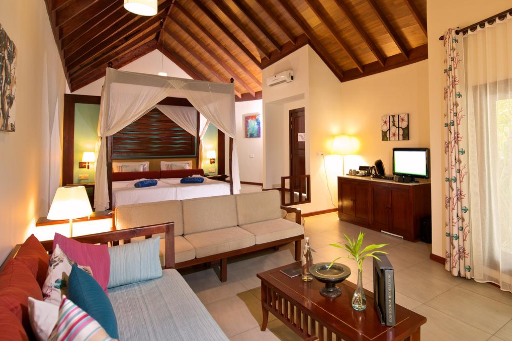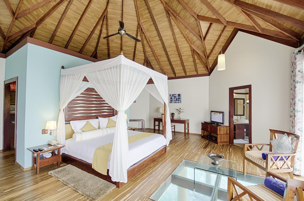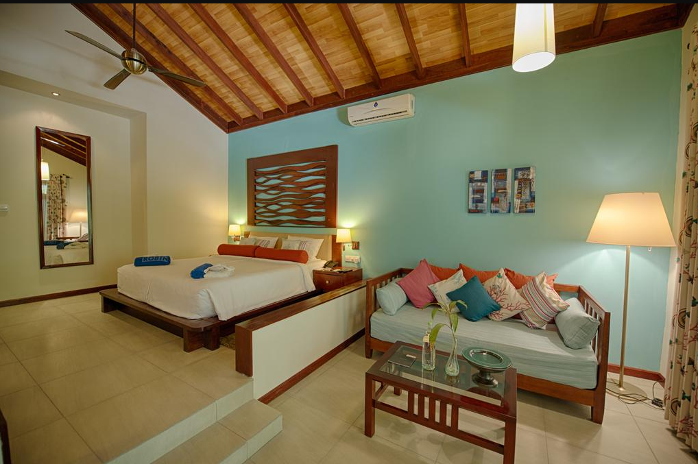 房型介绍:座落在水边,宽敞的平房可感受到海洋微风,中规中矩的沙滩屋,和卡努呼拉岛沙滩屋很类似,但价格便宜多了。 所有沙滩房型前面都有低矮植被,视线要越过植被才能看到大海。