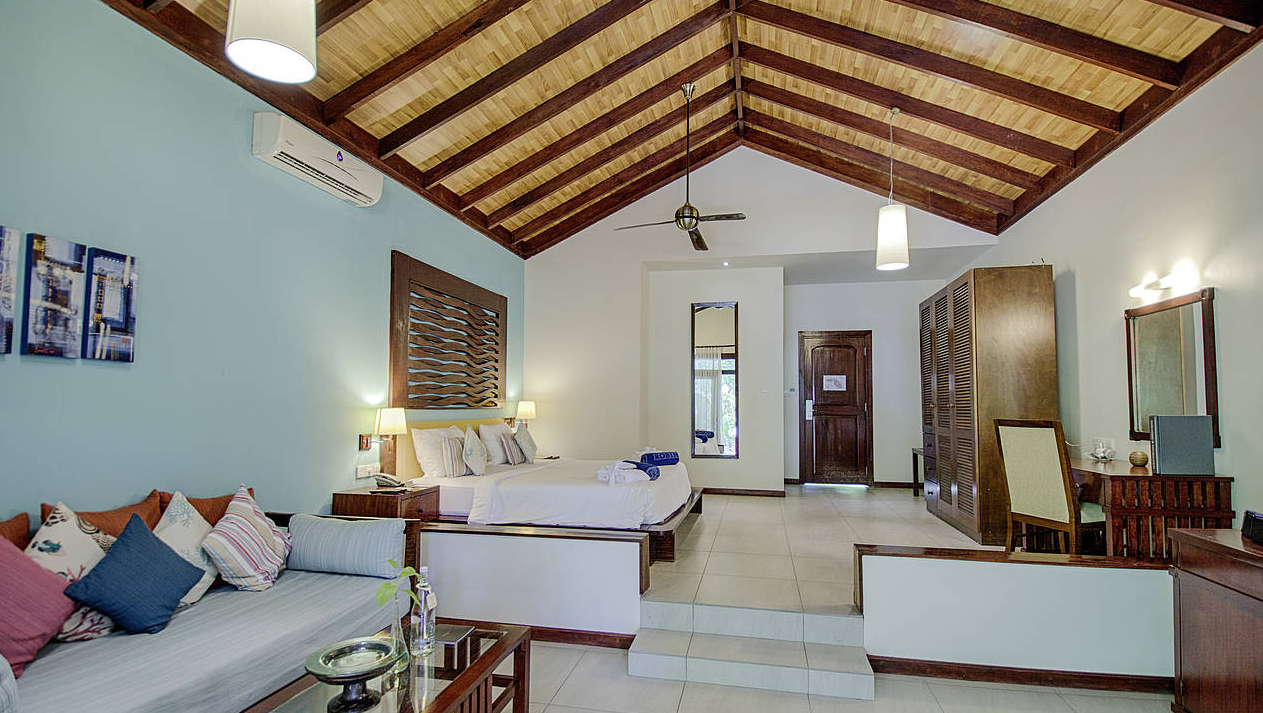 房型介绍:花园别墅Garden Villa,每间别墅都有私人宽敞露台,可以让客人在享受日光浴的同时,一览岛上的热带风光。除此之外每间别墅内还特别设置了一个室外花园雨水淋浴,可以让客人一边欣赏美景一边沐浴。