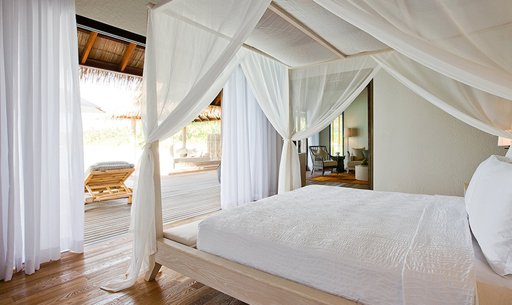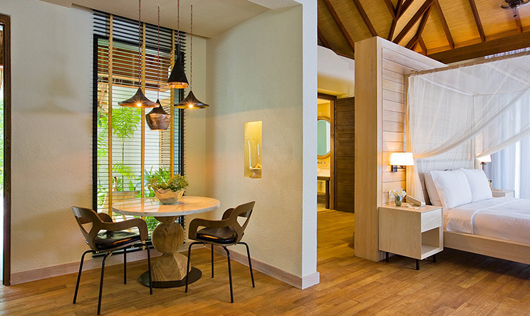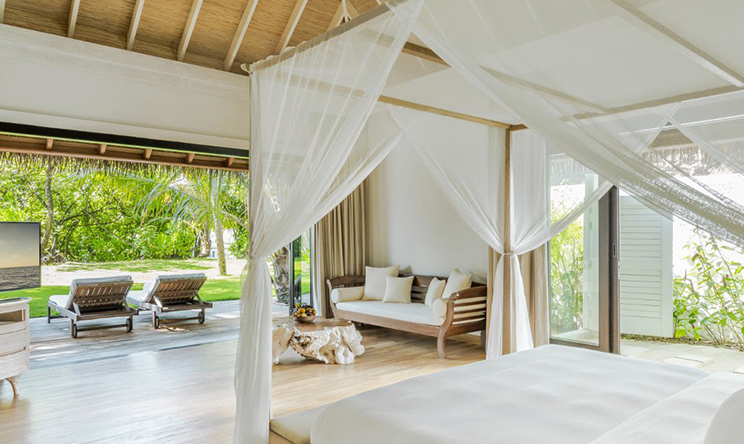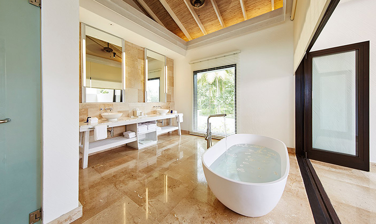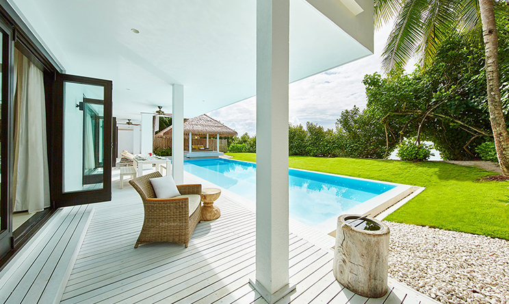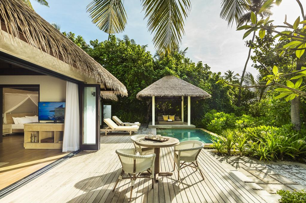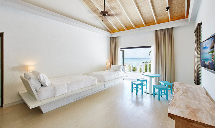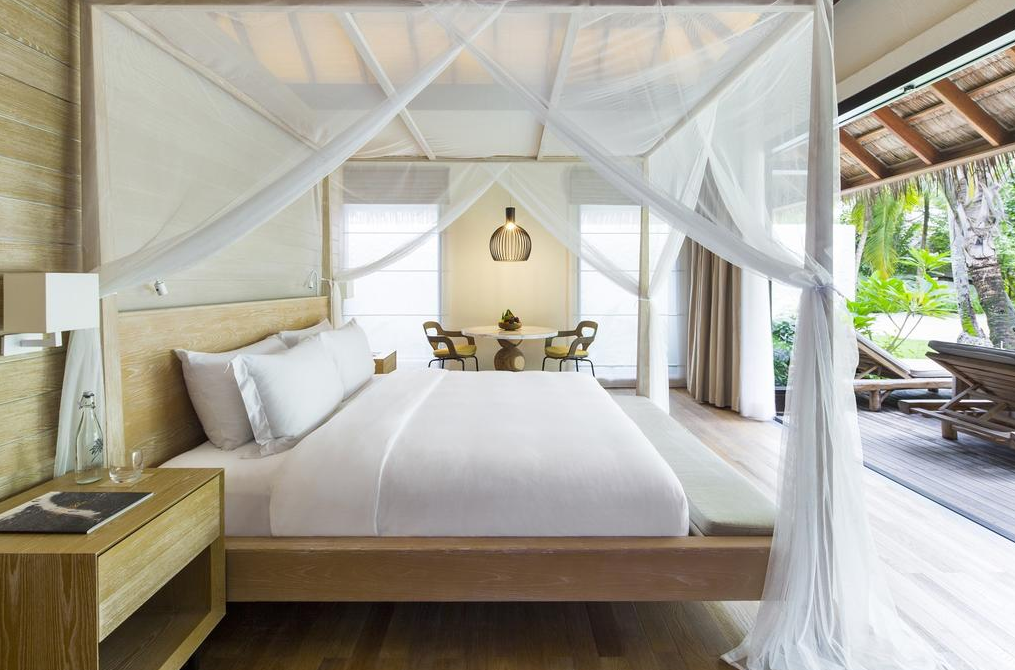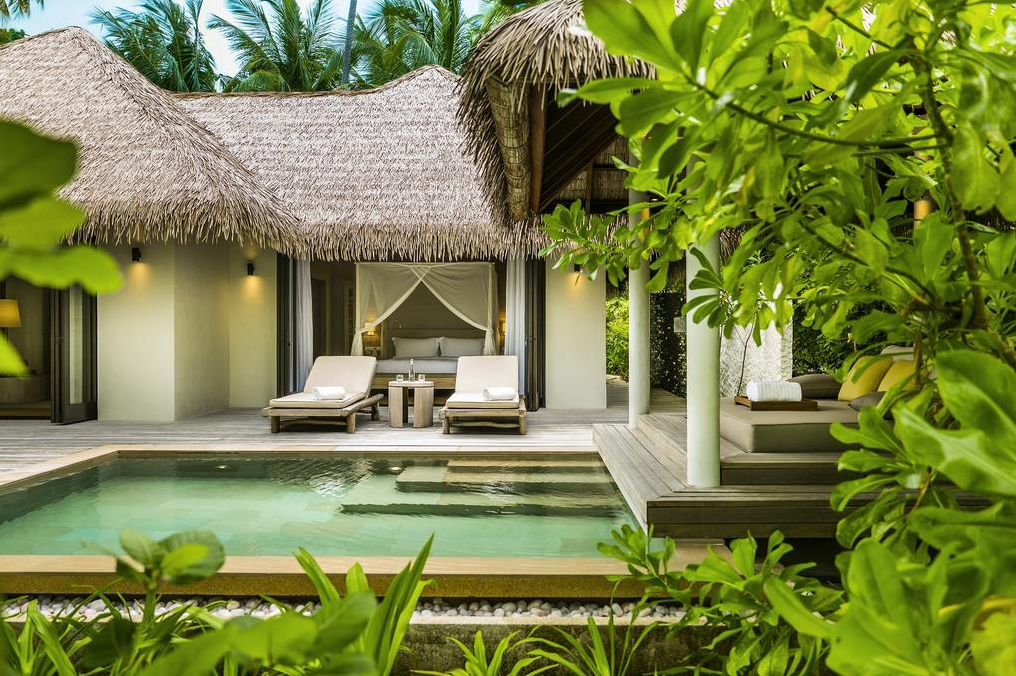双卧室别墅(一张大床和一张较小的双床)可以通向私人沙滩,配备有私人的游泳池。客人可以通过卧室的门直接通往阳台,在私人游泳池中放松自己。