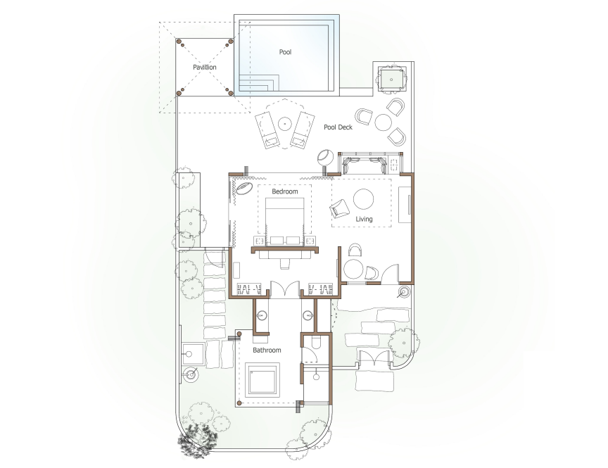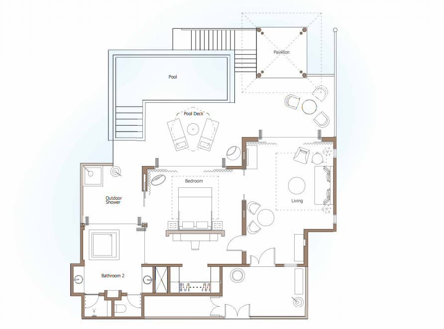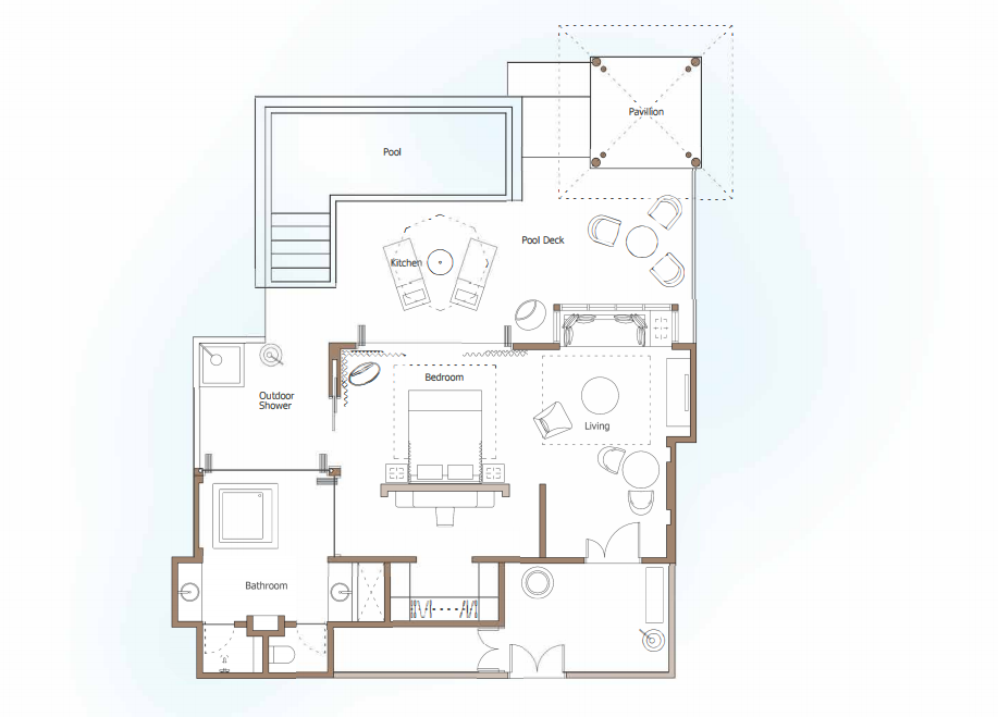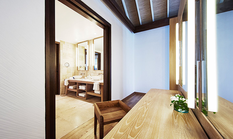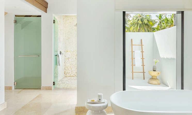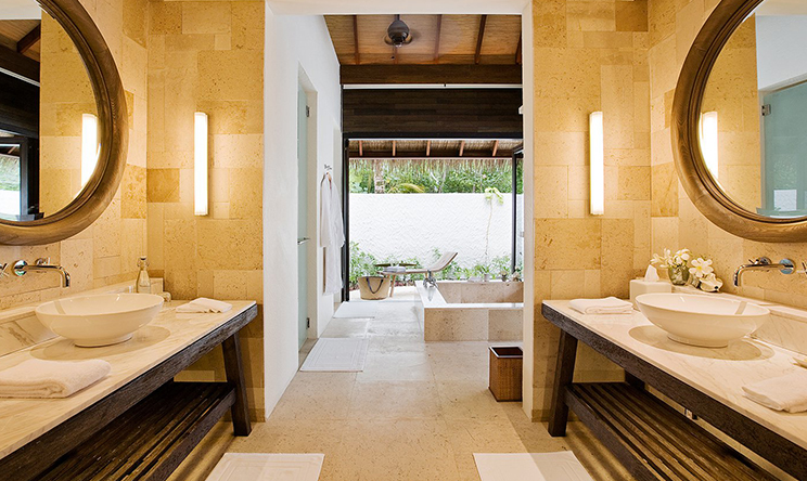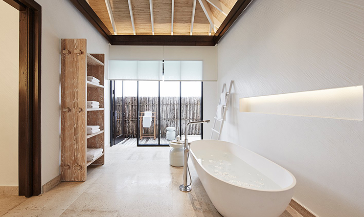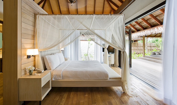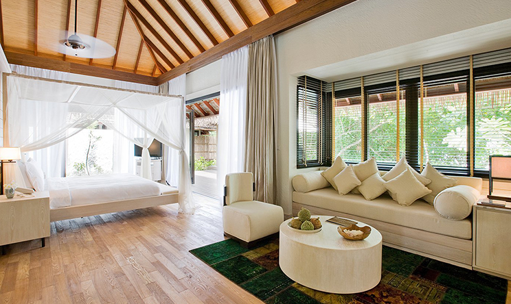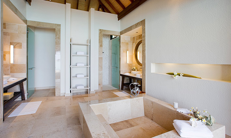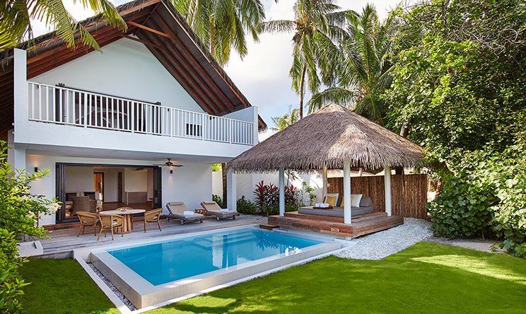 双卧室别墅(一张大床和一张较小的双床)可以通向私人沙滩,配备有私人的游泳池。客人可以通过卧室的门直接通往阳台,在私人游泳池中放松自己。