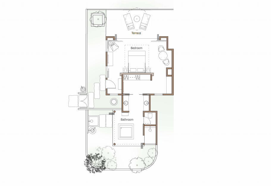 房型介绍:花园客房坐落于海岛的中心位置,被度假酒店中郁郁葱葱的热带植物环抱,只需经由沙滩步行片刻就能抵达所有其他度假设施,客房采用开放式布局,每间客房均有一个带家具的露台,可供宾客在露天就餐。