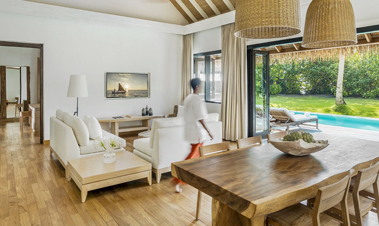 COMO Villa 位于蔚蓝礁湖的上方,配有私人泳池和管家,是 COMO Maalifushi 奢华居所的典范。(配有2个卧室)