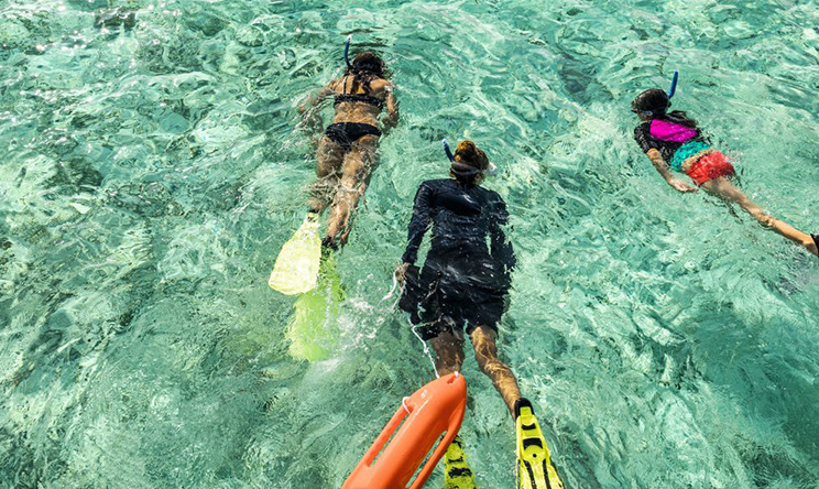 活动介绍:参与皮划艇之旅(含导览),探索度假酒店周围的环礁区,尽享独特难忘的浮潜体验。我们经验丰富的导游将划船载您去往礁石区的陡坡边缘(全程时长 20 分钟)。您可在此处的环礁区浮潜,与鹦嘴鱼、扁鲨和刺尾鱼等缤纷多彩的海洋生物亲密接触。有时,您还可能见到鹰鳐或绿海龟从眼前游过。