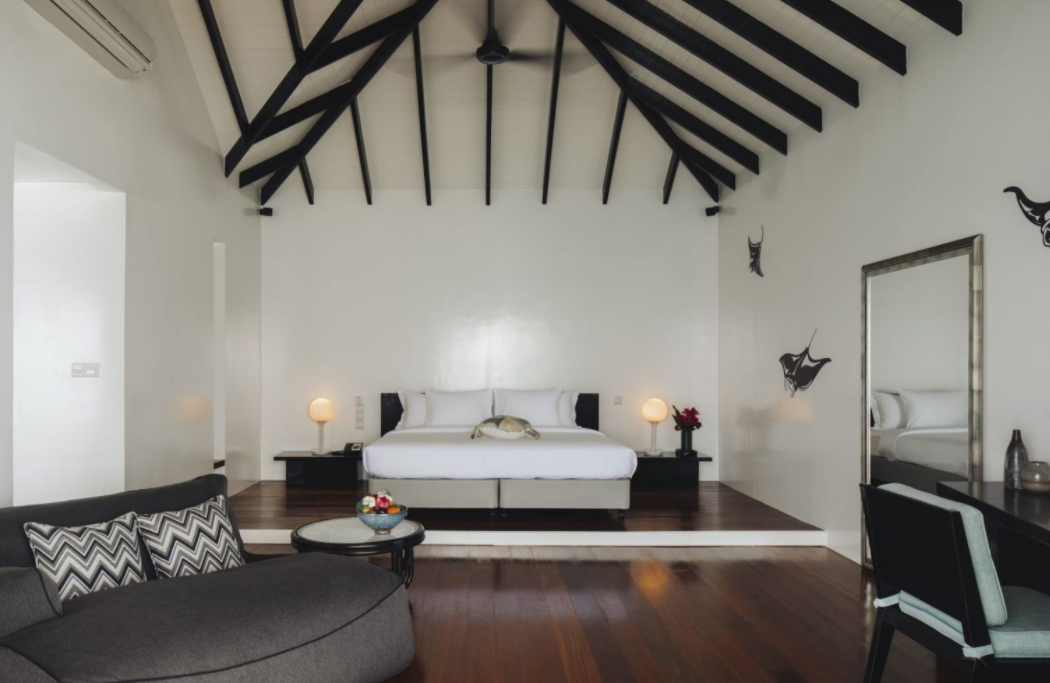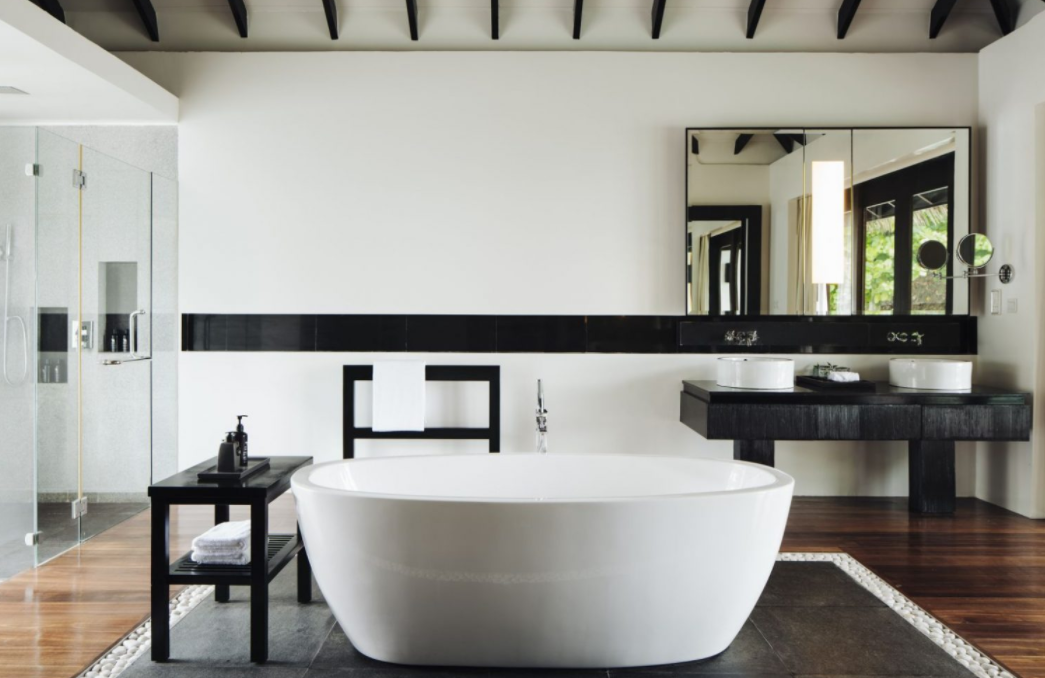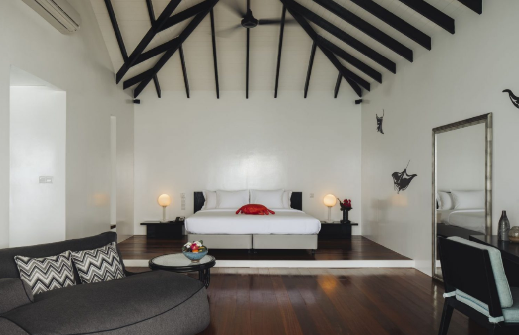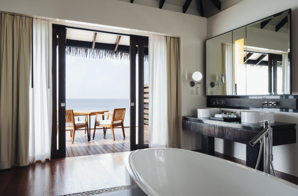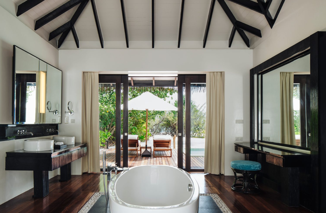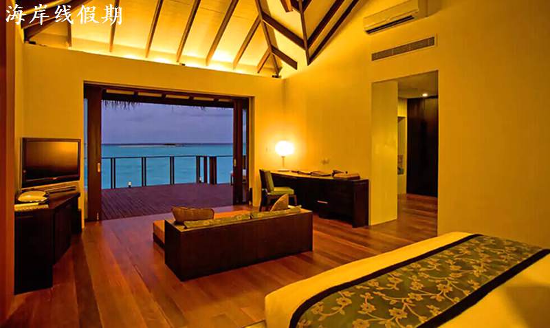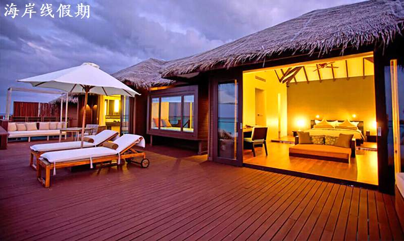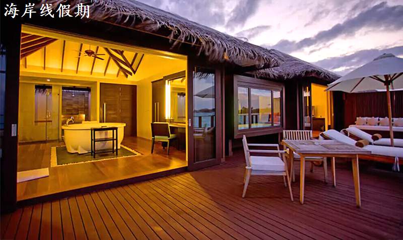 别墅坐落于泻湖之上,可以直达泻湖。宽敞别墅配有开放式卫生间拥有壮丽景观。