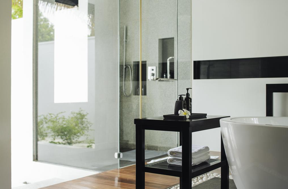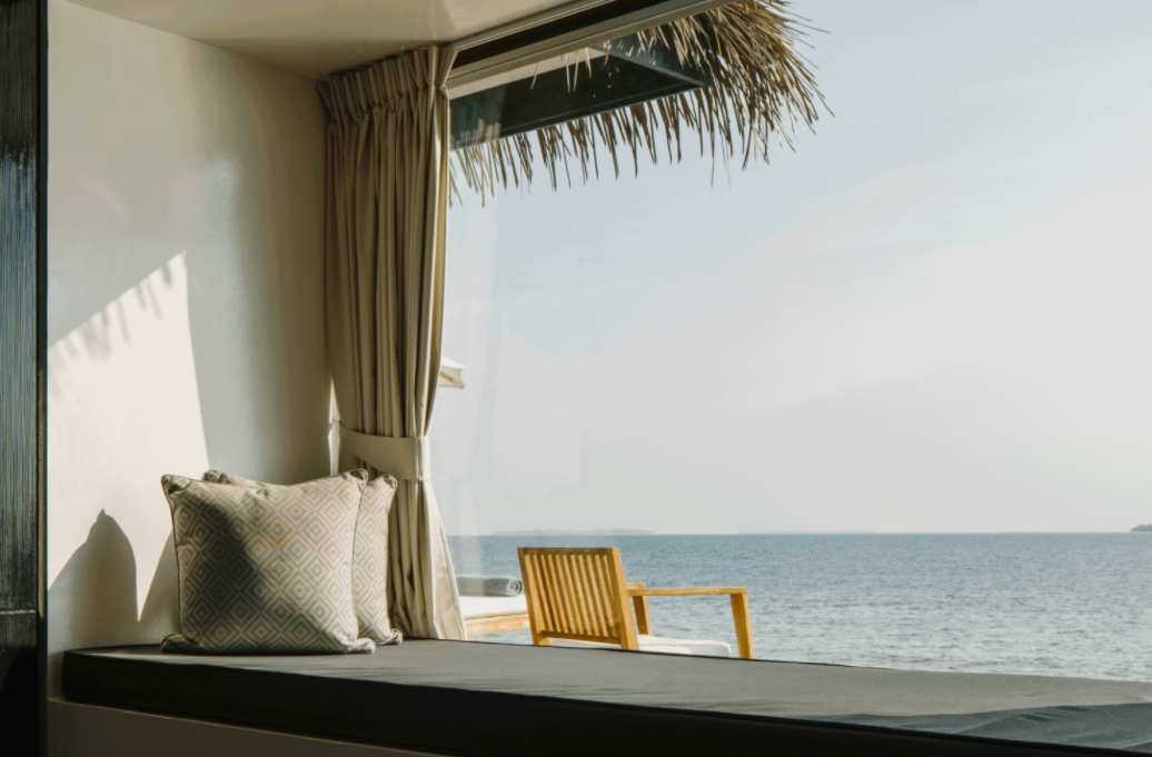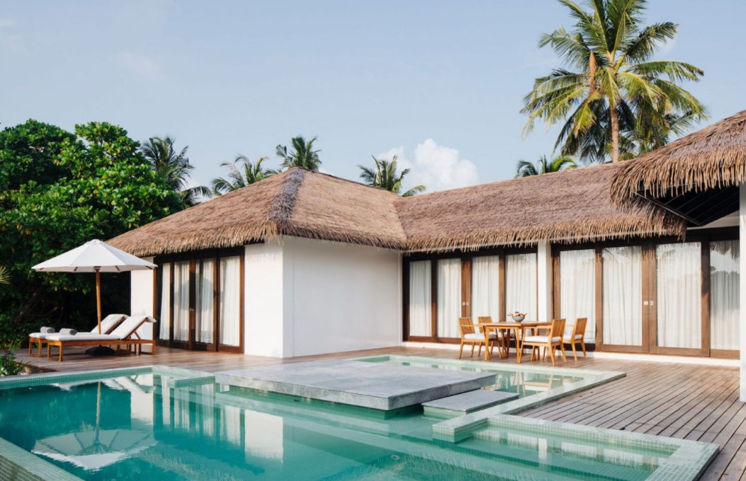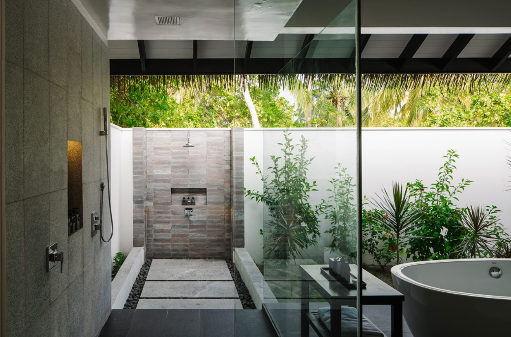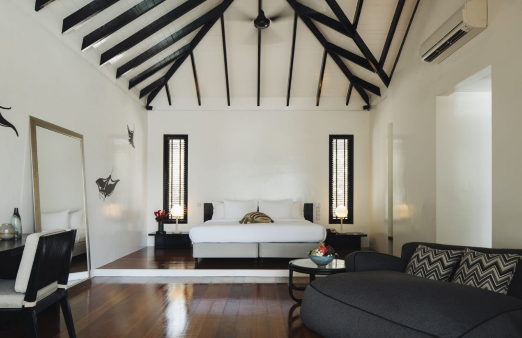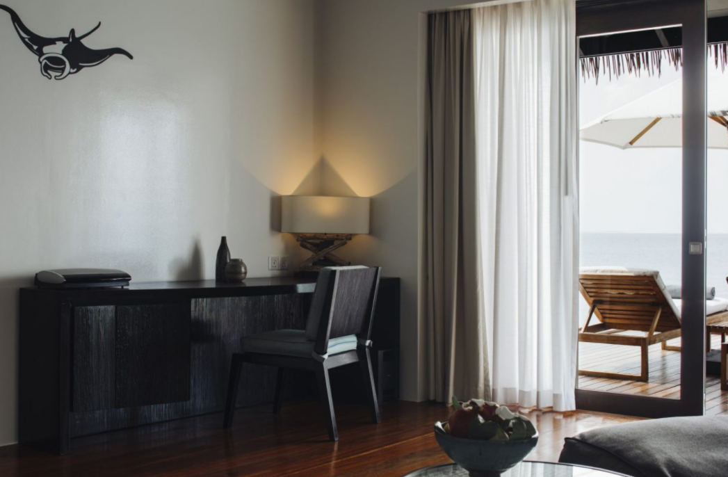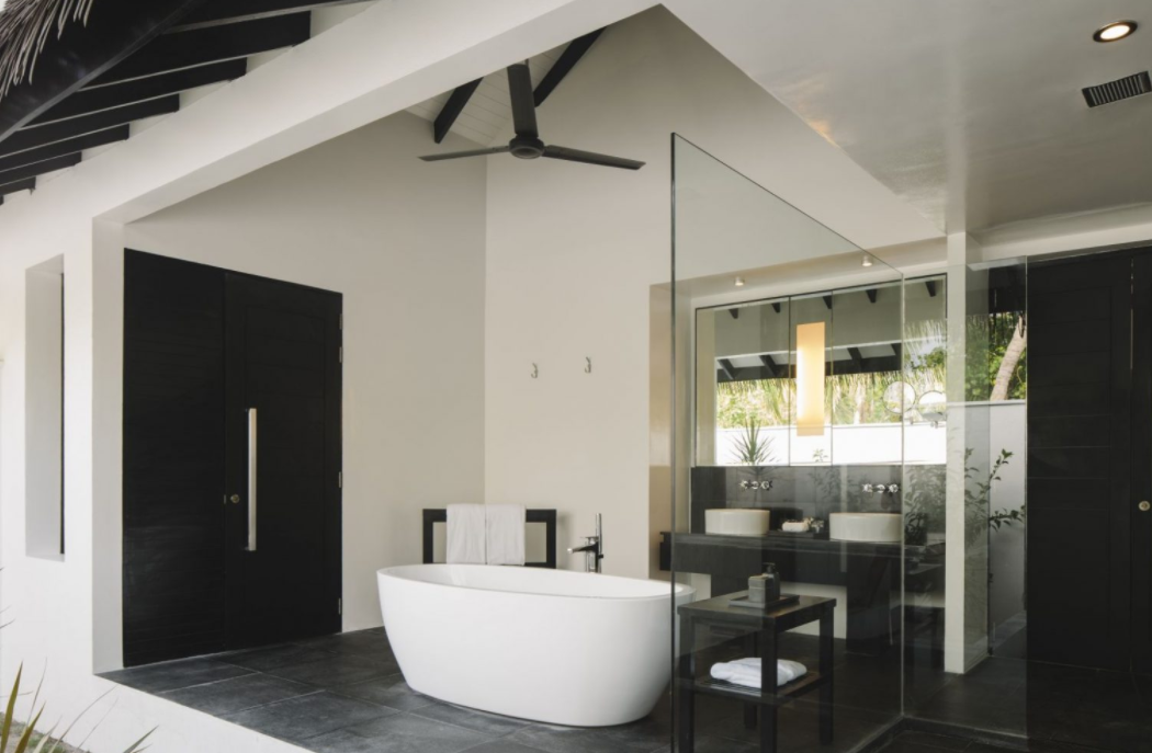 别墅坐落于泻湖之上,可以直达泻湖。宽敞别墅配有开放式卫生间拥有壮丽景观。
