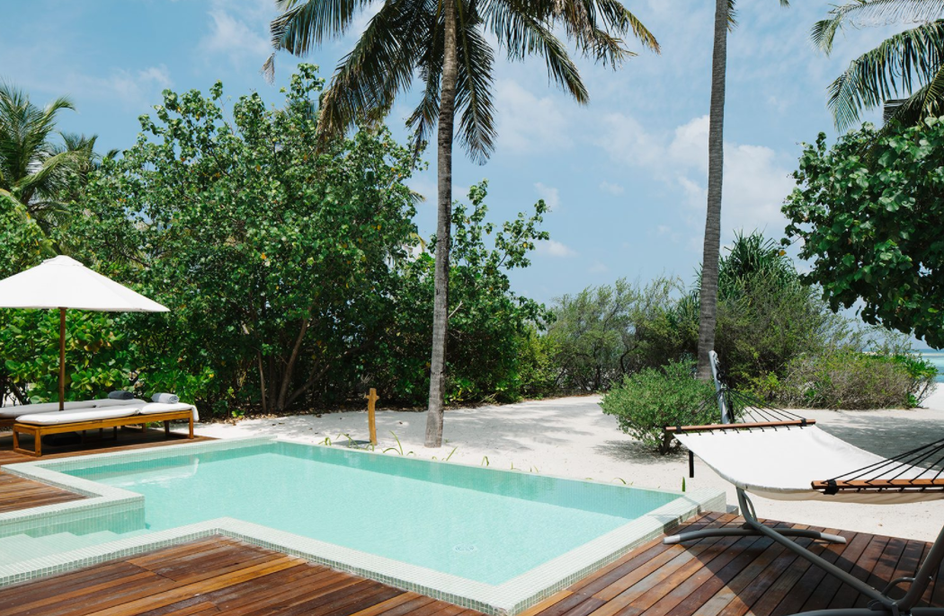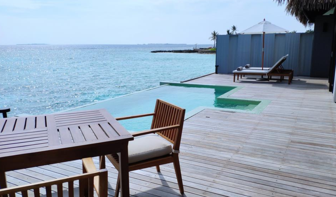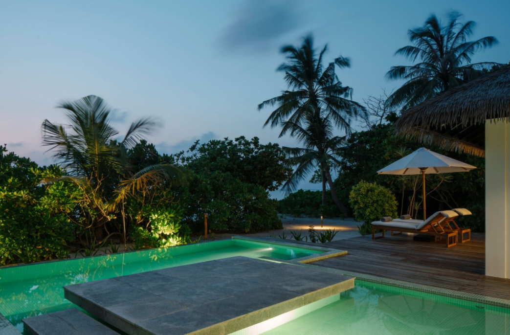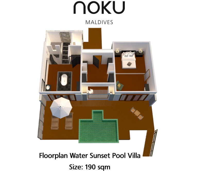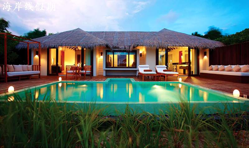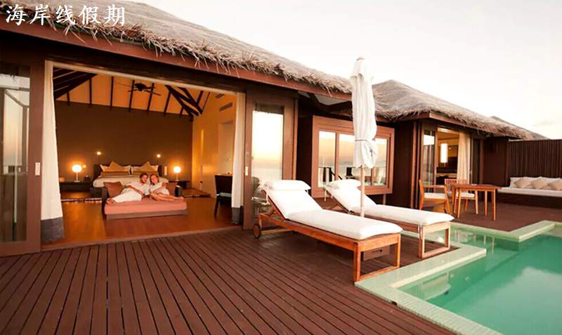 别墅坐落于泻湖之上,设有一座大型私人游泳池,配有壮丽景观的开放式卫生间,提供行政休息室。并有日落无敌海景 泳池面积:6米长x3米宽x1.2米深