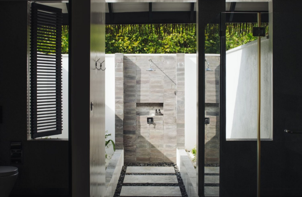 别墅邻近海滩,配有壮丽景观的开放式卫生间,设有大型私人泳池。 泳池面积:6米长x3米宽x1.2米深