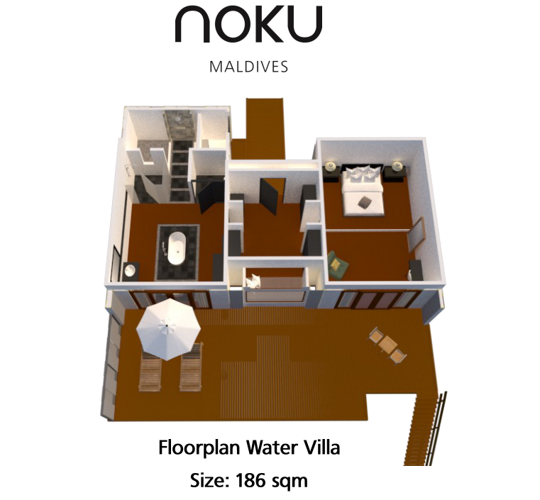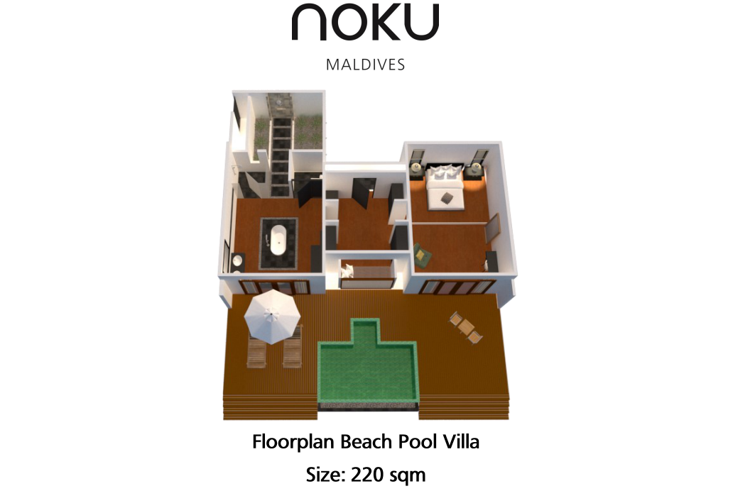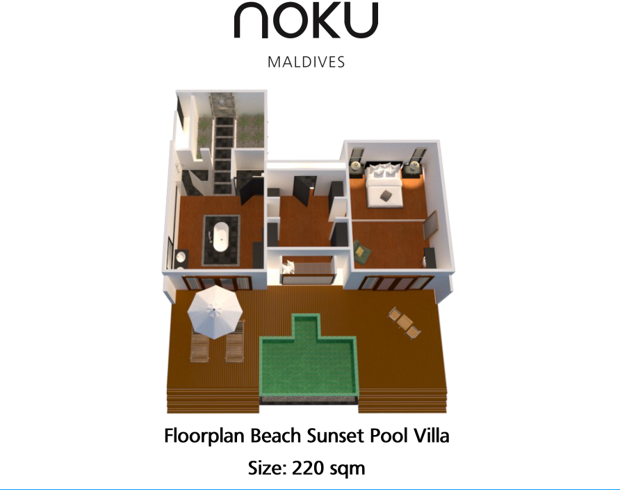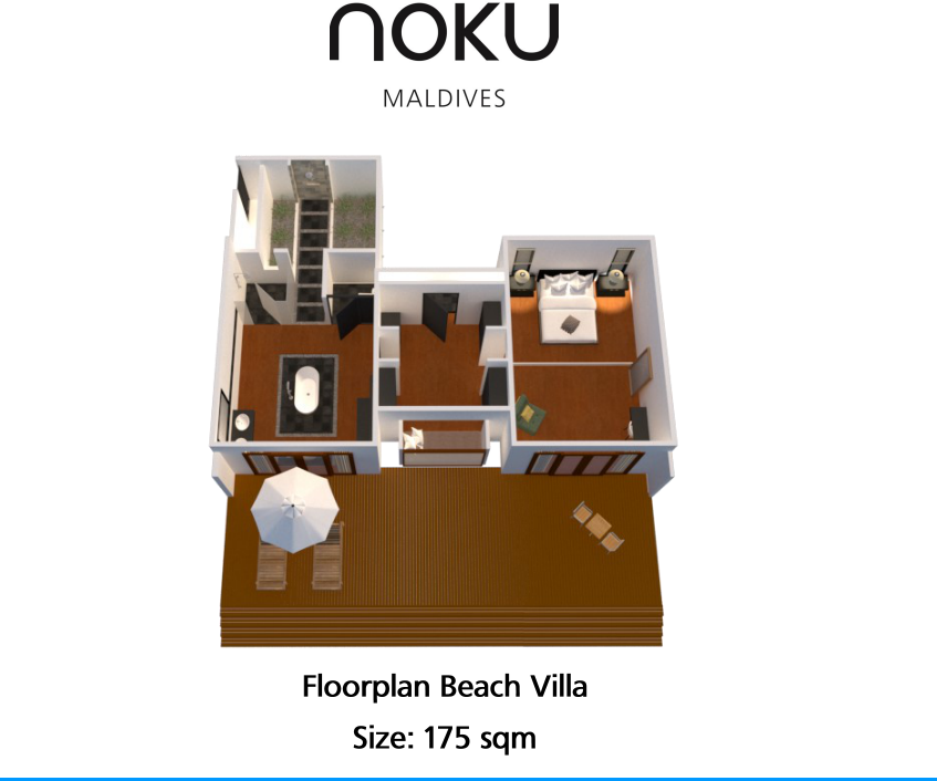 诺库岛 (Noku Roxy)座落在诺鲁环礁(Noonu Atoll)。从马累国际机场搭乘水飞45分钟即可到达。属于中型岛屿,环岛一周步行约20分钟,周长约1870米,面积12.84万平方米(839米*153米)。于2017.8开业。