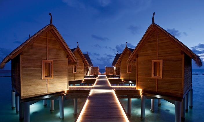 沙滩别墅位于通往水上别墅的码头起点,是海滩和水上别墅的完美结合。也就是半沙半水,一半在沙滩上,一半在水上,之前全部属于水屋,现在酒店区分开来。