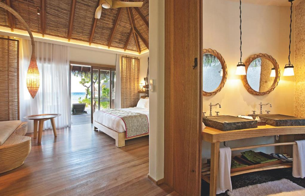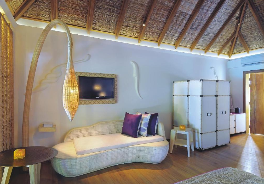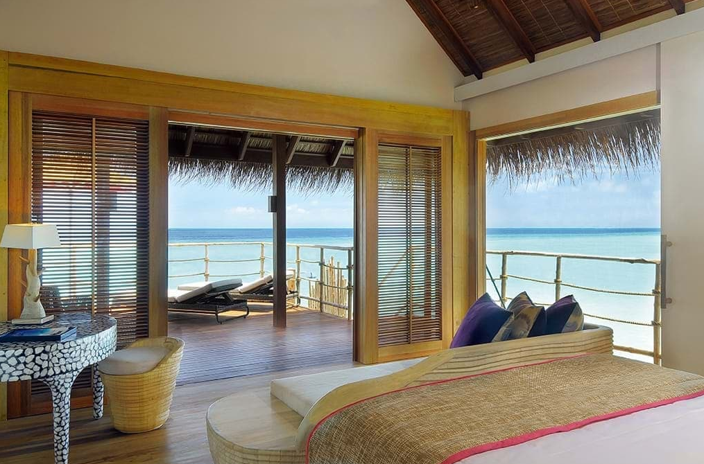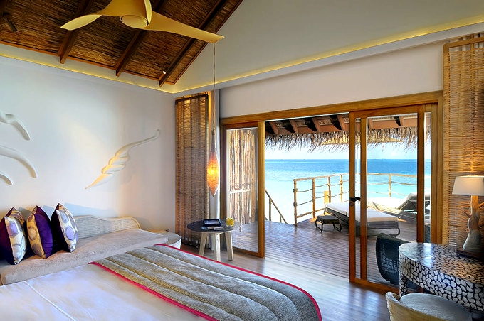 房型介绍:慕芙士岛水上别墅配有名家设计的独特家具使房间显得更为精致,为客人提供了一个豪华而便利的住宿环境。您将会被这里最热情周道的服务而动容。这里设施齐全,配备了一个木制阳台,让您可以在潜完水后,有一个休息和欣赏美景的好去处。