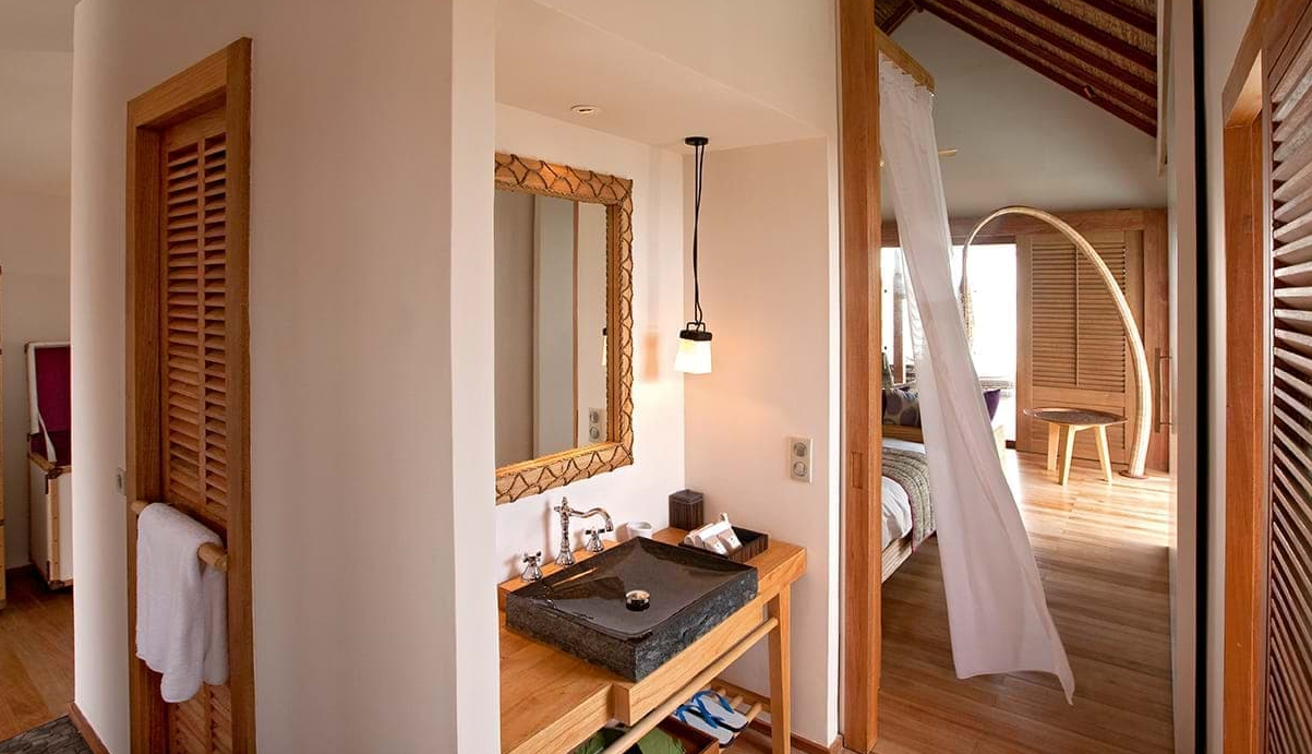 沙滩别墅位于通往水上别墅的码头起点,是海滩和水上别墅的完美结合。也就是半沙半水,一半在沙滩上,一半在水上,之前全部属于水屋,现在酒店区分开来。