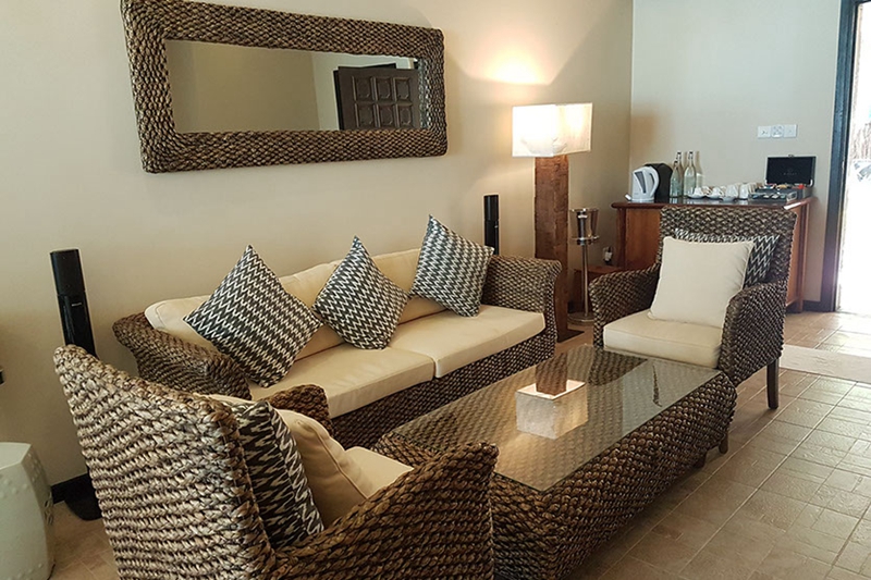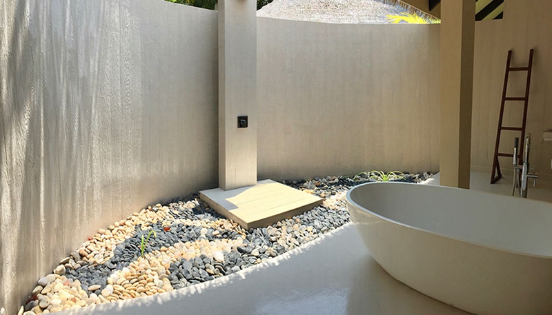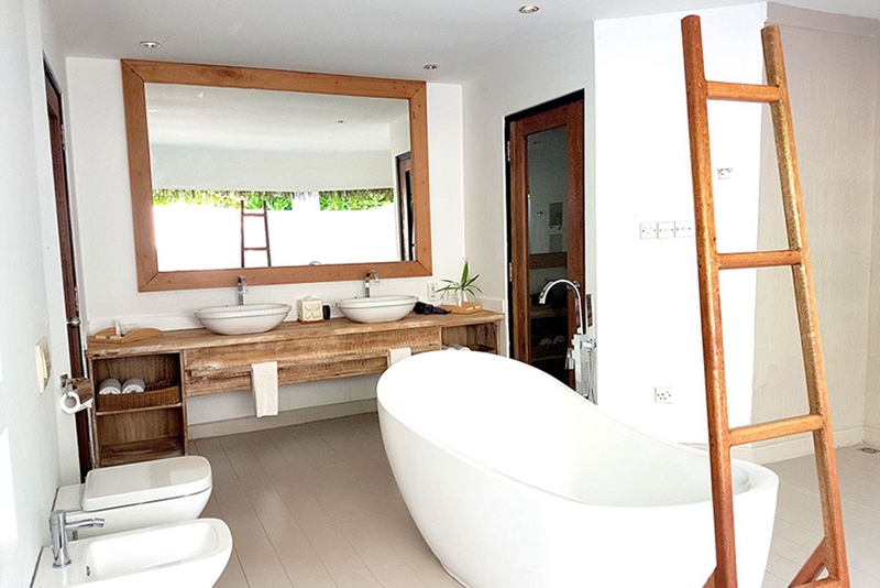 新颖的马尔代夫套房外型设计灵感来源于美丽的贝壳。套房拥有一间大床卧室,超大浴室拥有露天花洒淋浴区和豪华浴缸,并设有独立的洗手间。舒适的起居室内置有活动衣橱。房间距离印度洋海岸几步之遥,在这里,或是在茂密植被当中度过一个难以忘怀的轻松假期。