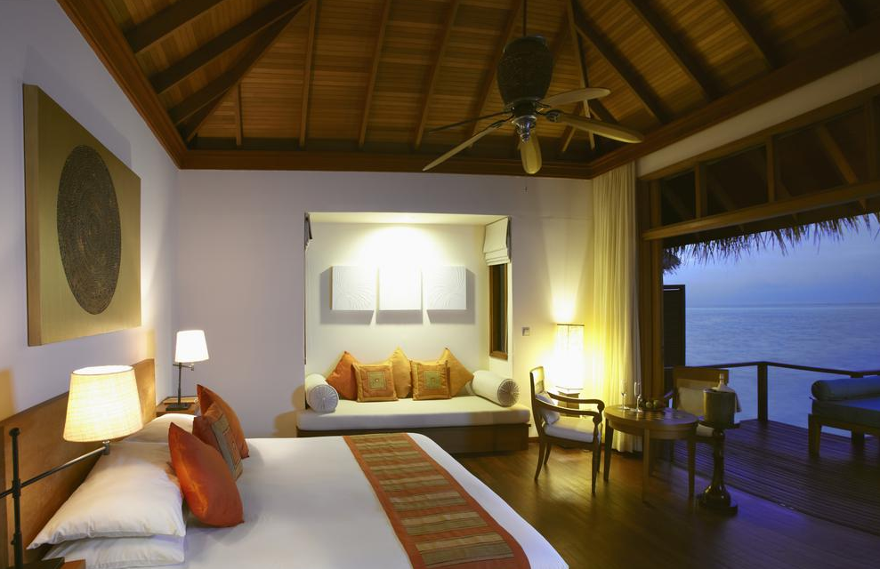 房型介绍:安娜塔拉薇莉岛水上度假小屋配有硬木地板和椰叶屋顶和时尚的现代内饰。床上铺着当地纺织品,典雅的半露天浴室飘来热带鲜花和茉莉的阵阵清香。私人小屋的独享日光露台为每位客人提供温馨的私密空间,露台配有日光躺椅和浓荫中的沙发床,并能直接步入礁湖。
