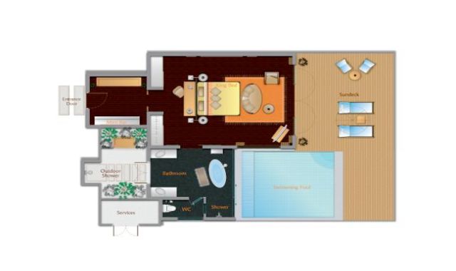 | 水高级水上度假屋--SUPERIOR OVER WATER BUNGALOW | 11 | 62平 | X | 2大 |