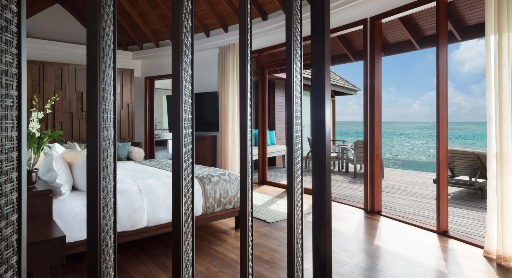 安纳塔拉水上泳池套房经过精心设计,室内起居室宽敞明亮,自带私人平台和泳池,尽览日落美景。水上阳光平台上备有躺椅和用餐区,并能直达泻湖,让您可以徜徉在蔚蓝的印度洋中;而室内更配有舒适的特大双人床...查看更多