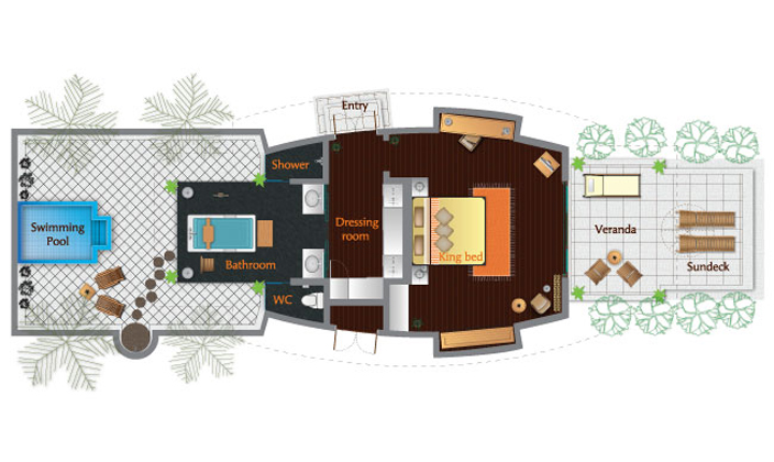 安纳塔拉水上泳池套房经过精心设计,室内起居室宽敞明亮,自带私人平台和泳池,尽览日落美景。水上阳光平台上备有躺椅和用餐区,并能直达泻湖,让您可以徜徉在蔚蓝的印度洋中;而室内更配有舒适的特大双人床...查看更多