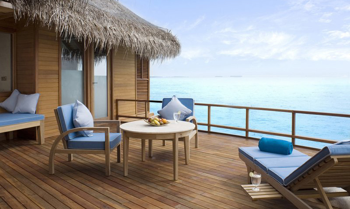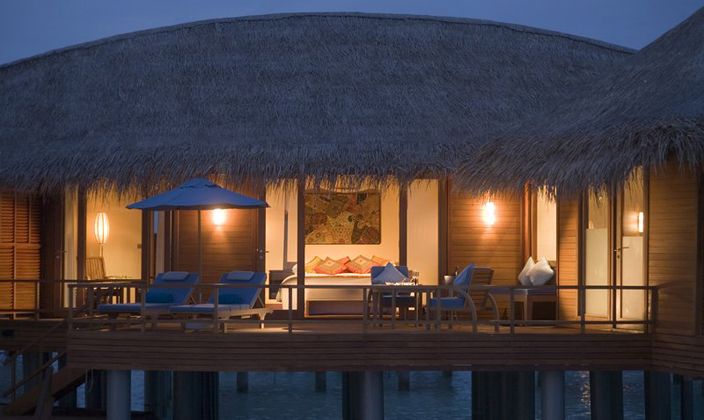 日落水上套房可欣赏迷人的日落。每天在您配有躺椅和餐桌的私人日光甲板上欣赏这一美景。在小屋之下的碧蓝海水中畅游,或是透过浴室地板的玻璃观景窗,欣赏印度洋各种海洋生物在您的私人静居之下悠然游弋。浸...查看更多
