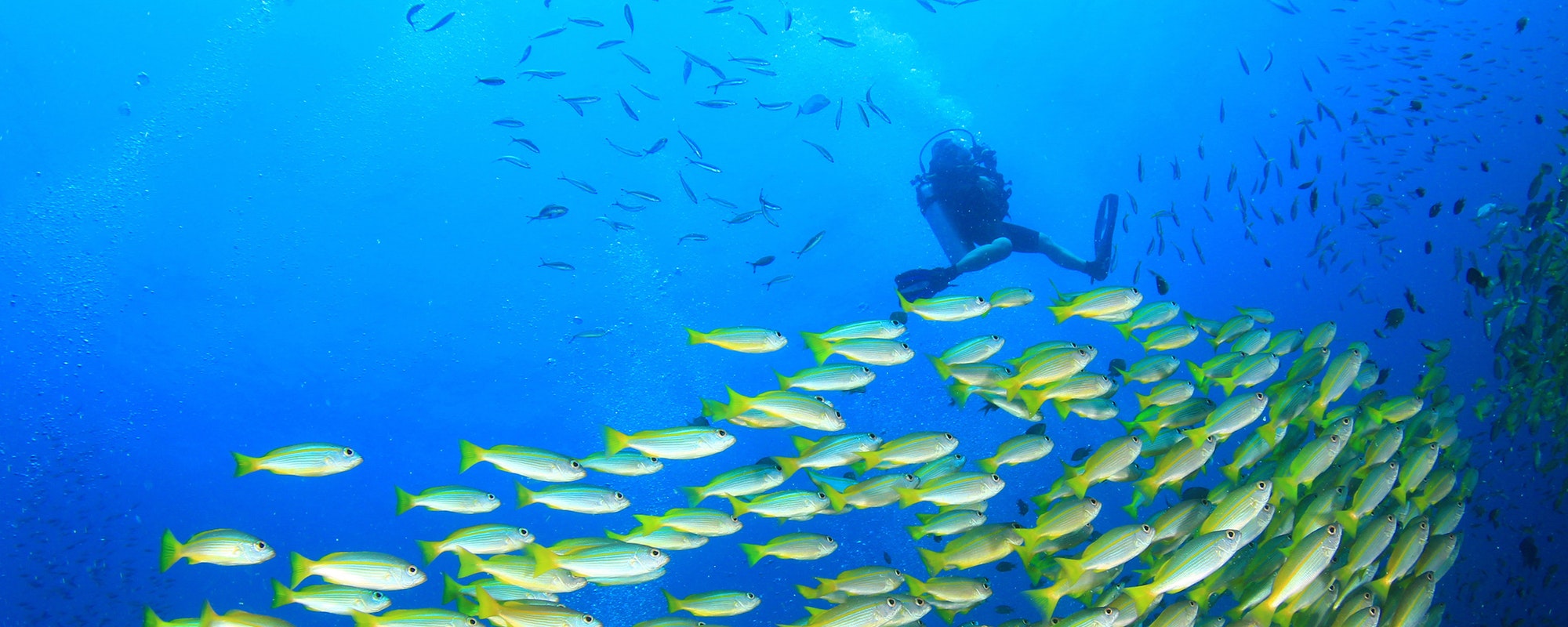 潜水中心介绍:五颜六色的海洋生物将平静的水域变成了一只万花筒。 被长久以来形成的原生态珊瑚礁环绕着的伊露岛是一座活天堂,也是世界上最丰富的潜水胜地之一,潜水者能在此获得多样的发现。 除此之外,诺鲁环礁的礁石还有前所未有的自然奇观,邀请您在此潜入大海深处。不论您已在世界各地的其他地方体验过潜水,还是第一次戴上面具,我们的PADI认证潜水中心和能讲多种语言的潜水大师都会提供全系列的课程,并组织到环礁周围一些地点的团体或私人游览,每次游览都会获得独特的发现。 无论是白天还是夜晚,不论在开放水域还是掩蔽的礁石,您都可选择自己的潜水探险。