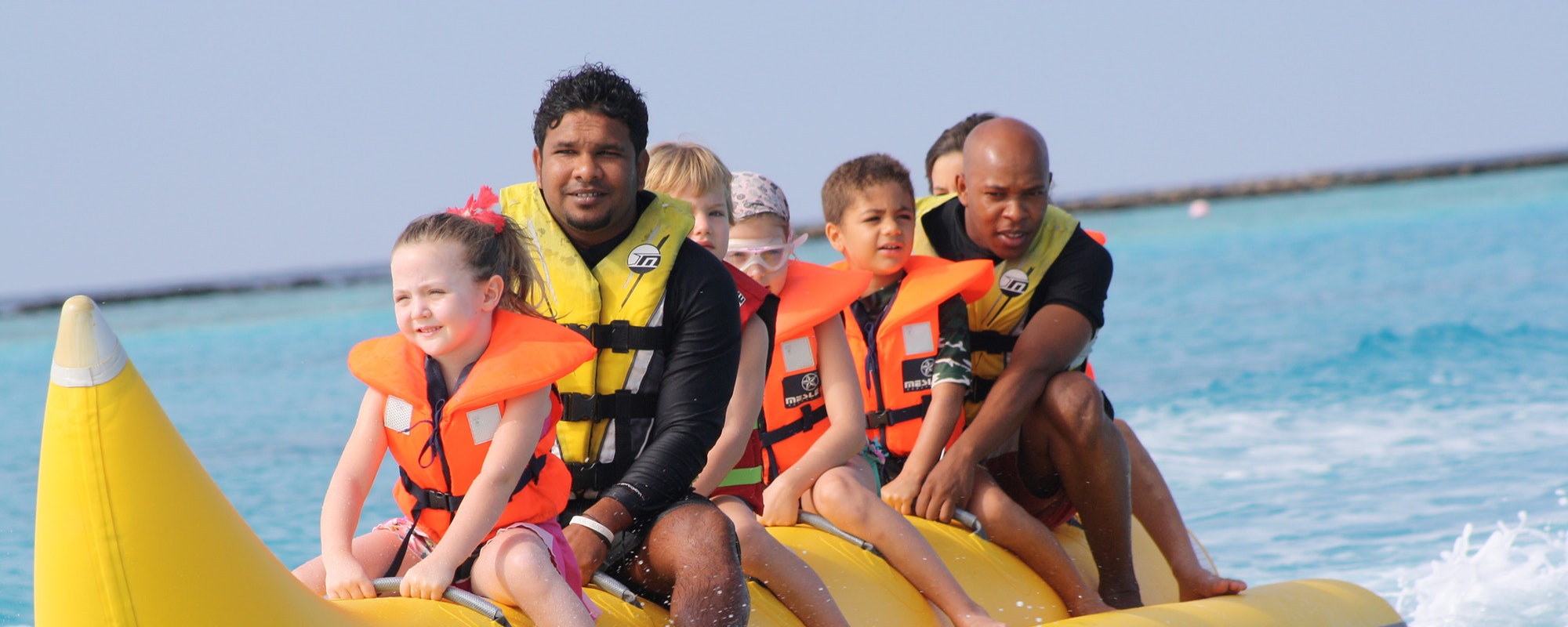 水上运动介绍:伊露岛的快艇、双体船队和我们自己的招牌式多尼船也让其他环礁宝岛变得触手可及。 气派地在水面滑行;您可以稳坐钓鱼台,手端一杯香槟观赏美景,或者学会在马尔代夫的海风中驾驭后,在船长的座位上操纵船只。那些希望马上就开始冒险的游客可以在教练指导下玩帆板或风筝冲浪,泻湖的光滑水面提供了完美的舞台。 各种机动水上运动也等待着您的参与,从香蕉船到滑水或水上摩托艇,它们为整个家庭带来了乐趣。