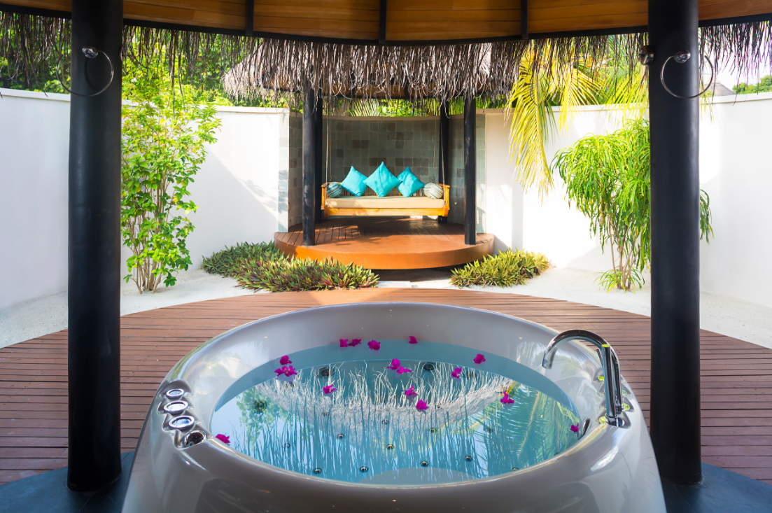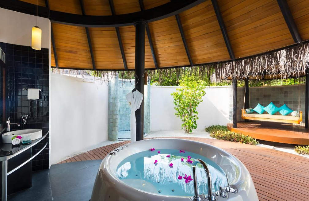 欢迎来到马尔代夫的完美豪华家庭住宿。适合4个成年人和1个孩子或2个成年人和3个孩子,这是你家庭度假的理想基础。这些别墅里有一个私人的露天浴室,这样你就可以欣赏到美丽的风景和温暖的马尔代夫空气,就像你在漫长的一天里泡个澡一样。从你的私人庭院里看日落,把你的家人聚在一起,一起吃早餐,在沙滩上或花园里欣赏美景。你的私人庭院里还有一个黑色的火山岩池、客厅和日床,所以你甚至不需要离开你的别墅去体验马尔代夫的奢华。