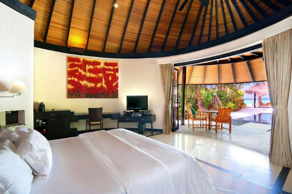 房型介绍:豪华海滩别墅越过露台,沙滩上有一座茅草凉亭,海浪在您身后拍打,不时能看到出来觅食的马尔代夫水母鸡,此时您定能体会到岛上的宁静带来的喜悦。