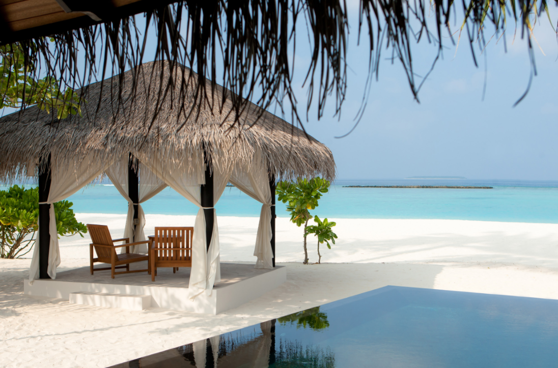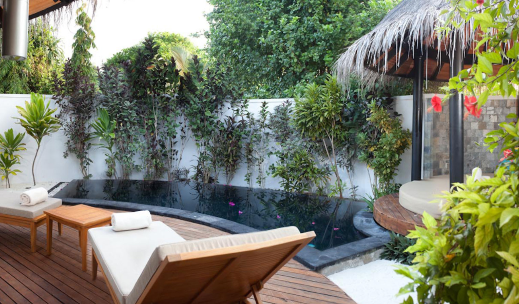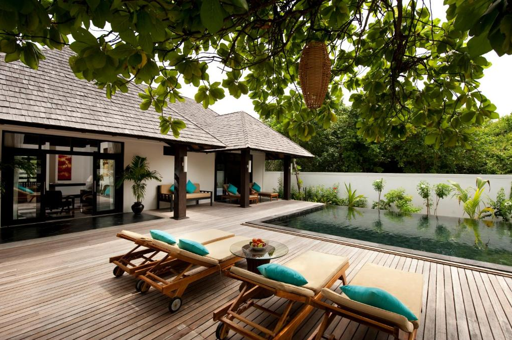房型介绍:池畔海滨别墅可分为卧室和独立的起居区,带有私人游泳池,只能从卧室进入。 户外露台带有顶棚,坐在豪华舒适的躺椅上可以俯瞰您的私人凉亭,最适合欣赏岛上的美景,并且海滩就近在咫尺。在池畔边缘还设有带有凉棚的躺椅,在夜晚烛光的映照下,尽显神奇浪漫和宁静。