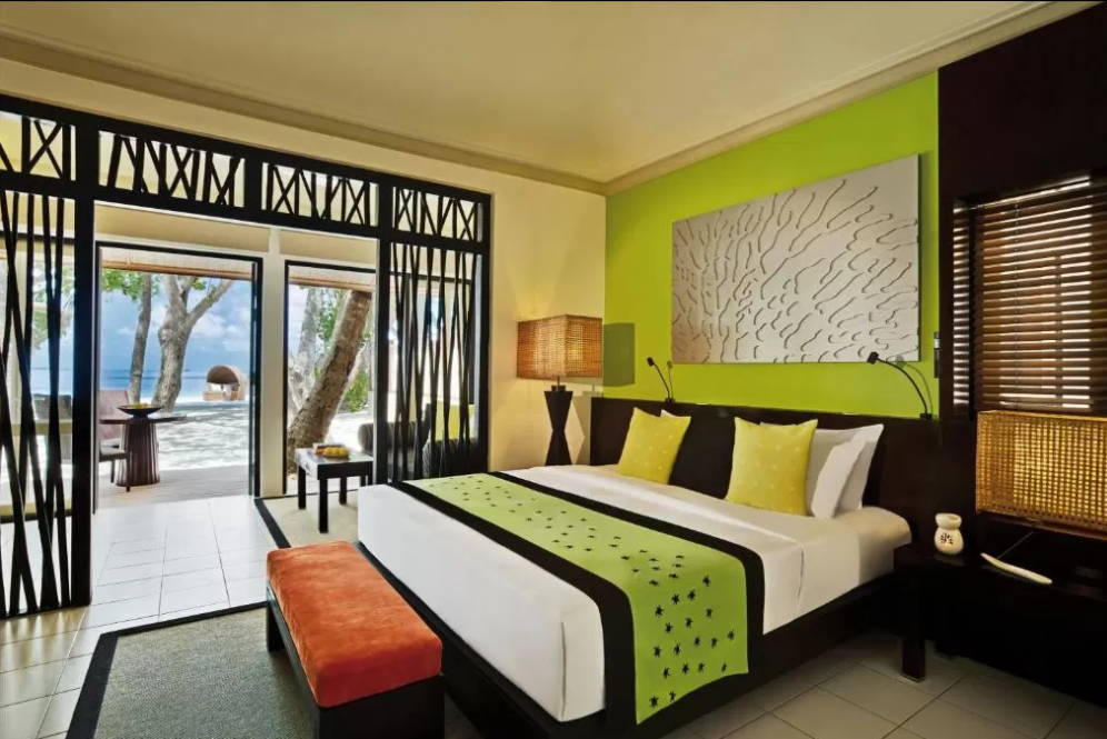 房型介绍:别墅就位于阳光灿烂的沙滩上,您可以一边欣赏美丽的印度洋,一边在您的专享秋千上尽情摇摆或静静地坐在走廊上。 在晴朗湛蓝的天空下,前往宁静的私人花园享受户外淋浴,在舒适的起居区和家人共度美好时光。