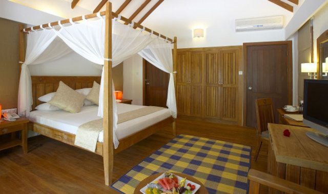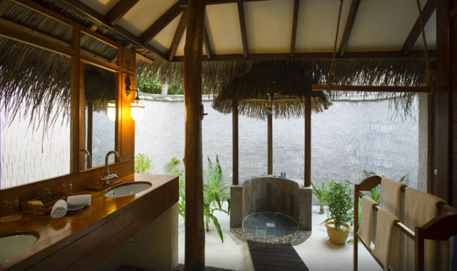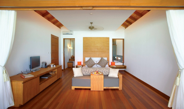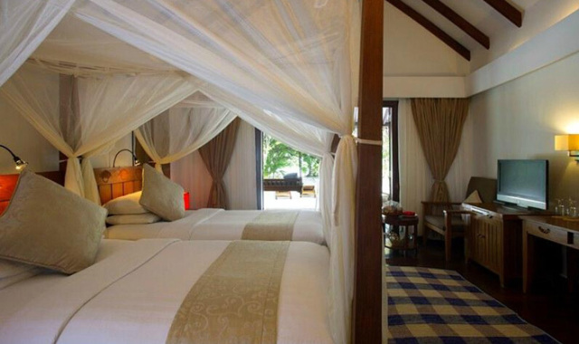 房型介绍:分散在岛屿上,面对海滩,四柱大床或双人床,室外淋浴,私人室外走廊,阳光休闲区,马尔代夫式的秋千。