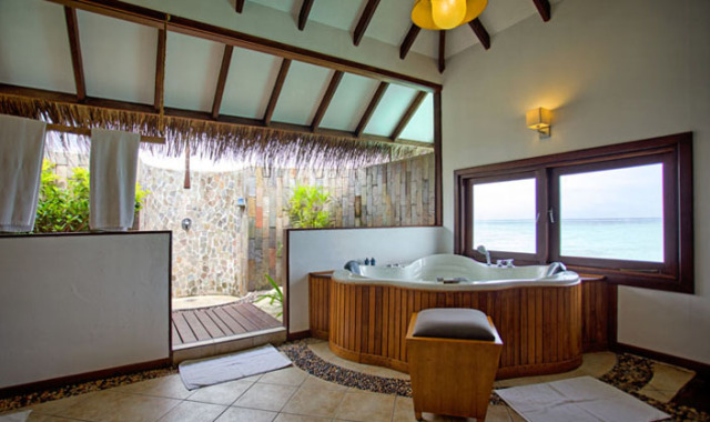 房型介绍:建于泻湖之上的独立位置,有四柱大床,大座位区和阳光浴甲板,室外淋浴设施, 加大浴缸,可观赏到海洋风景。
