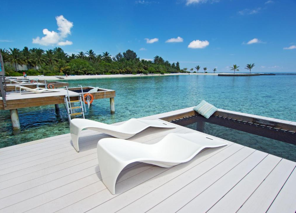 房型介绍:水上别墅为您呈现终极的马尔代夫体验。在清浅透彻的海水之上与绚丽的珊瑚和多姿的海洋生物相伴,在私人阳光甲板上把双足直接探入水中,纵享自然之最美、时光之奢华。宽敞的起居空间与超大的开放浴室相互呼应,后者还配有户外淋浴设备和能够欣赏水景的浴缸。