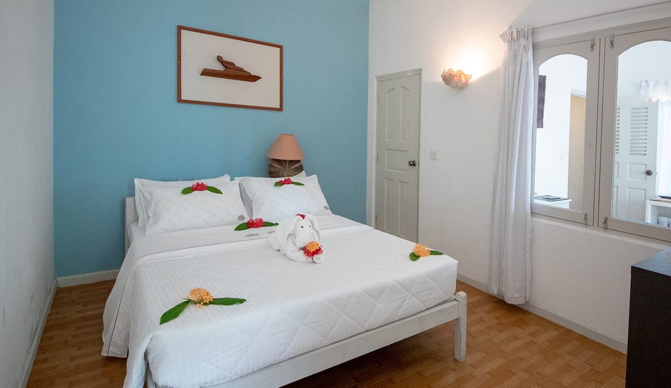 苏尔旦套房配有最舒适的卧室和最全的生活娱乐设施,出门便是一片私人海滩,而且附近就是潜水点,便捷舒适。而且该房间只有一间,带空调,装饰极具品位,适合家庭集体出游。