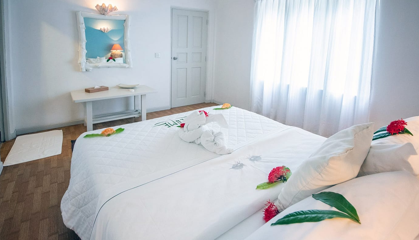 家庭沙滩别墅建在岛屿的北边,有两个卧室,两个浴室(其中一个开放式的淋浴),一个宽敞的客厅,还有一个私人的按摩浴缸,有自己私人的沙滩,私密性非常棒。