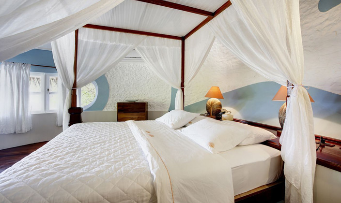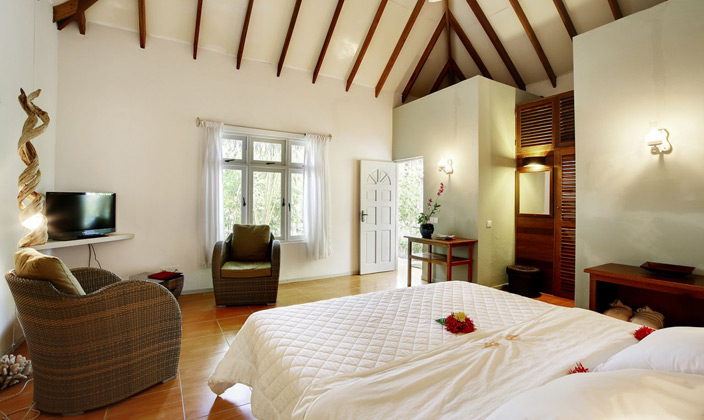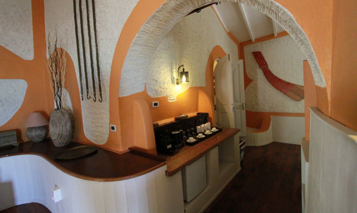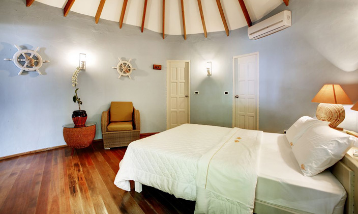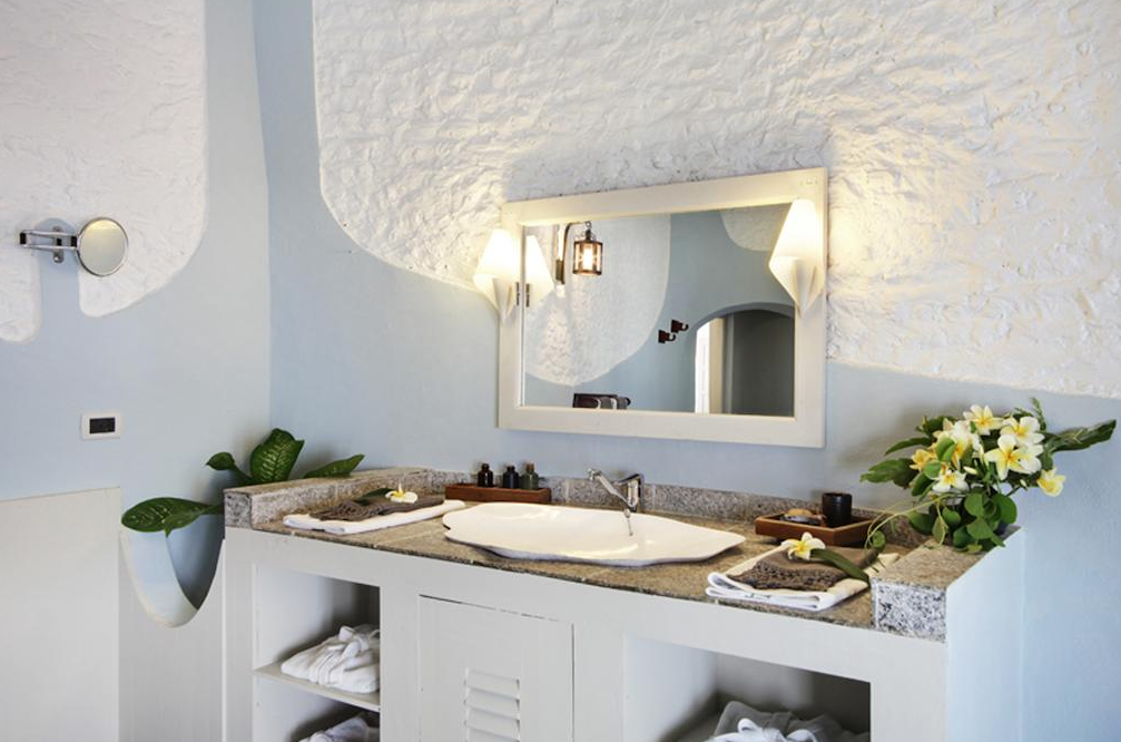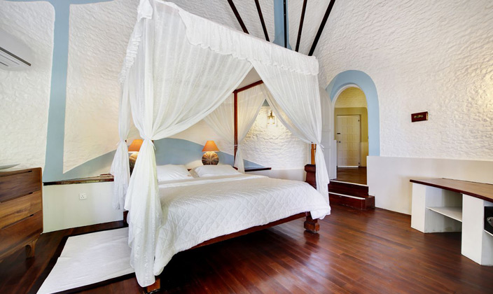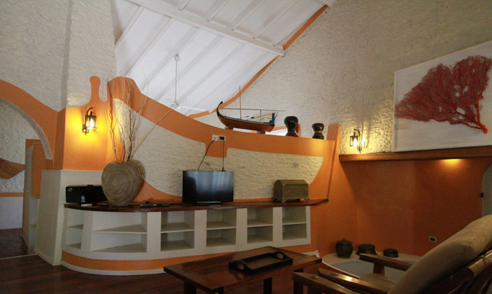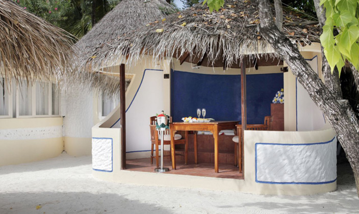 由卧室,客厅,浴室组成,浴室是设置在花园中的,其原始设计由意大利建筑师所创造,客厅可通往私人海滩,海滩上有沙滩休闲区,桌椅和太阳伞,在平房内还有露天淋浴设施,带给客人舒适,方便的享受。