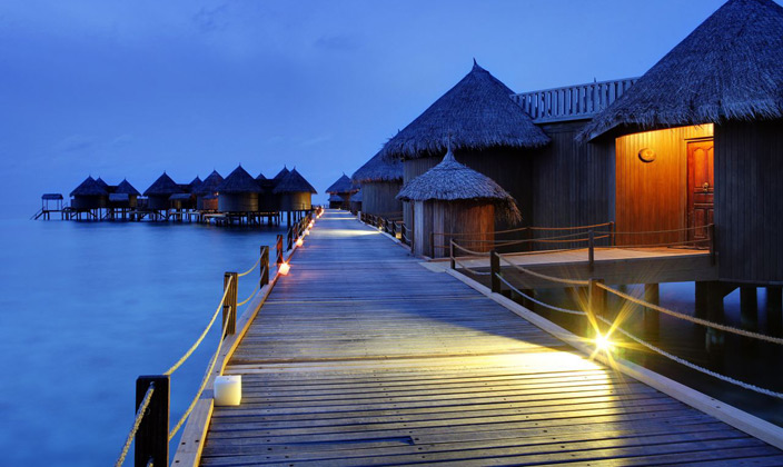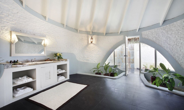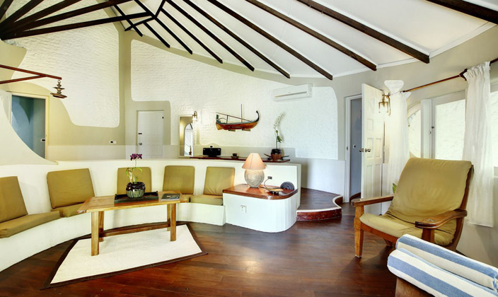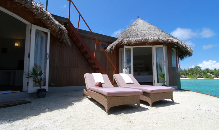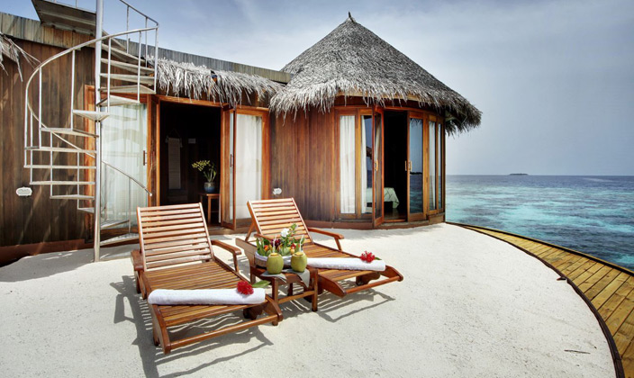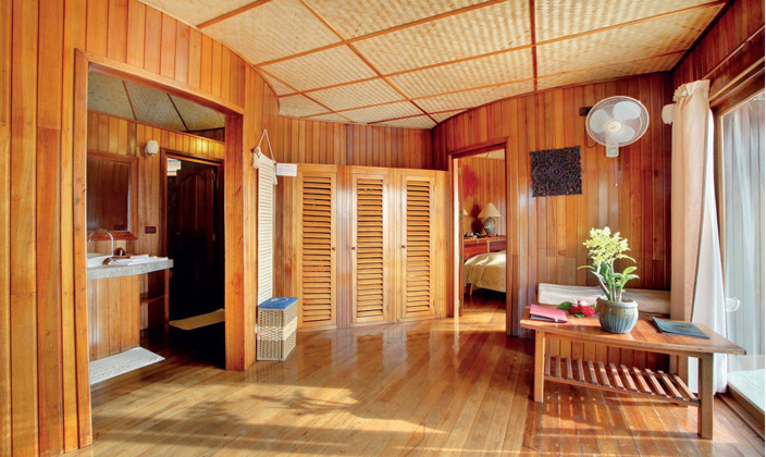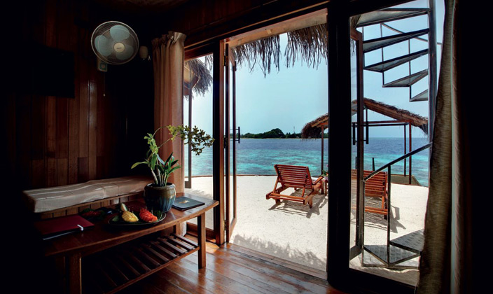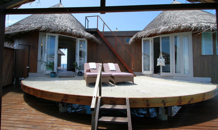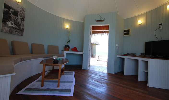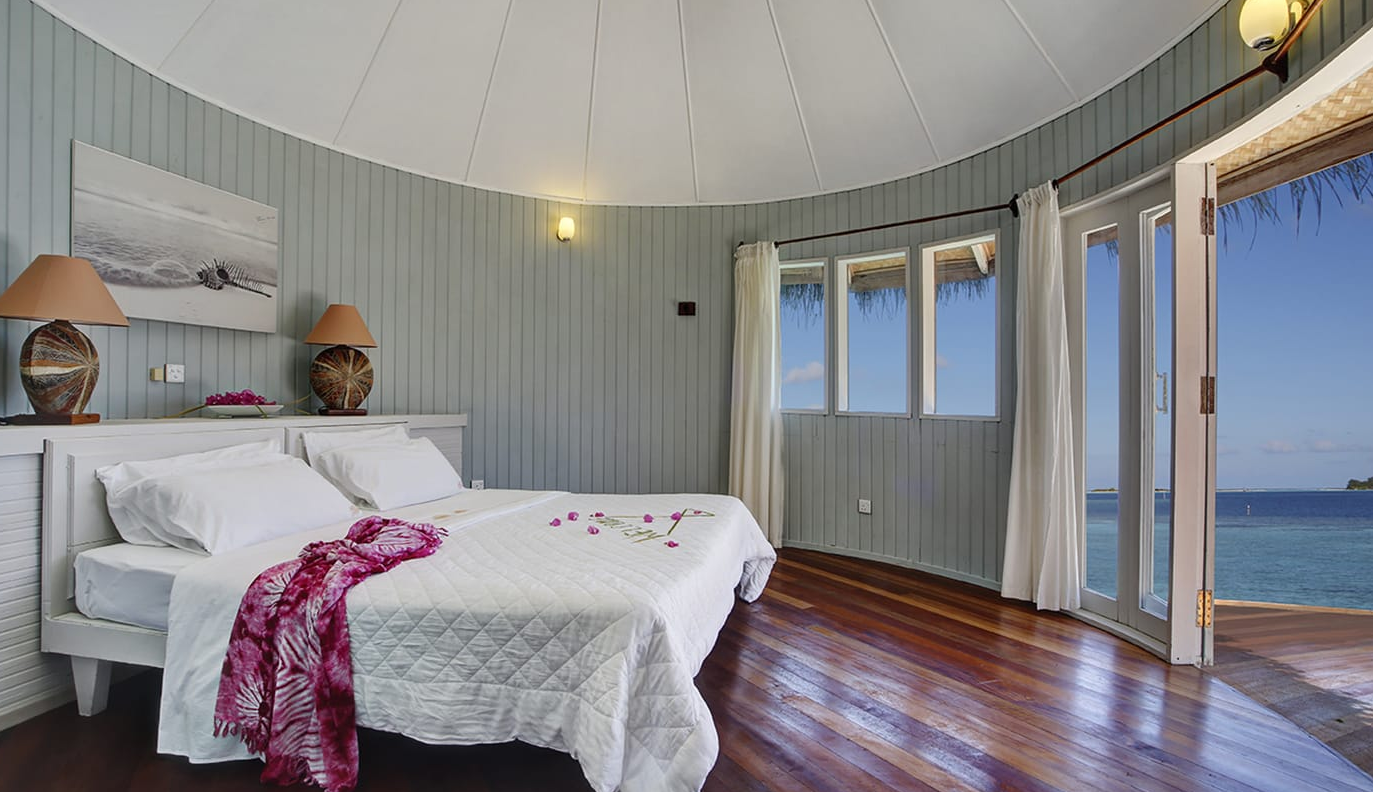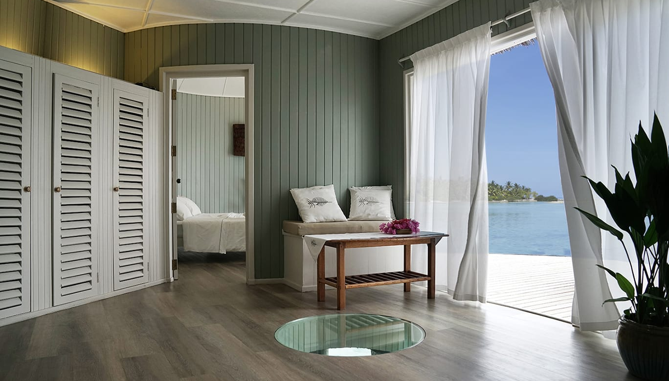 水上屋位于暗礁边缘,内部是由三个独立室组成,卧室,客厅和浴室,活动空间非常充裕,入住水上屋,海水近在咫尺。