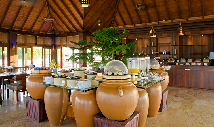 — 在主餐厅提供丰富的自助早餐。对于入住Jacuzzi water villa,honeymoon water villa,sunset water villas & Presidential suite 的客人,早餐可以在Four spices餐厅就餐