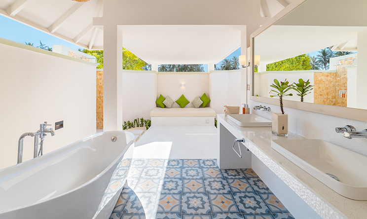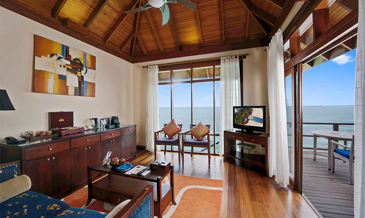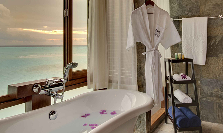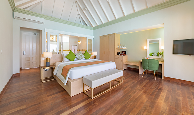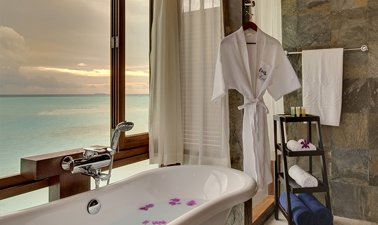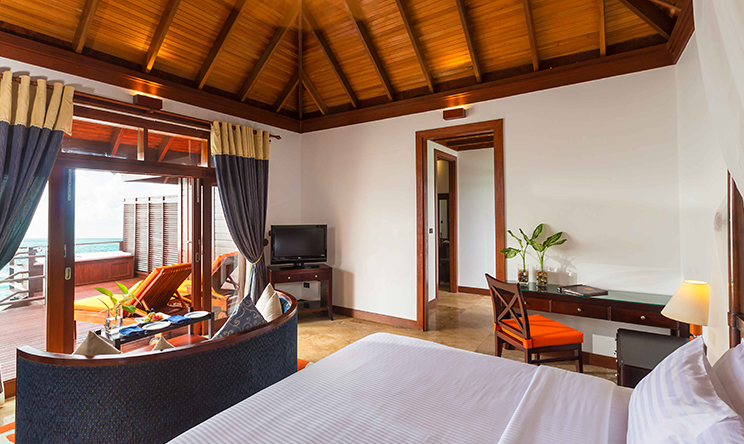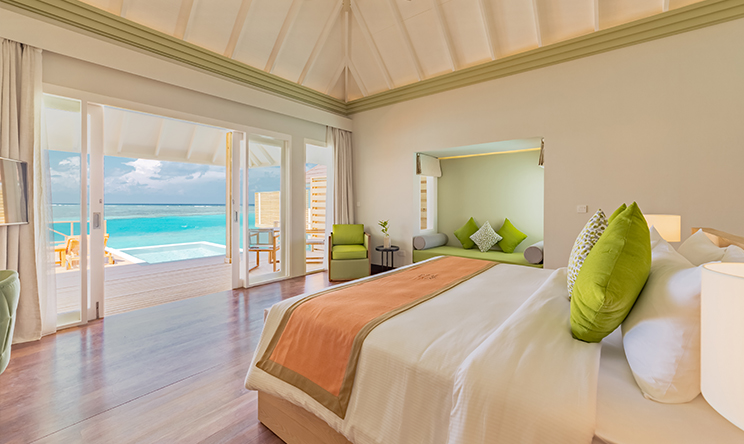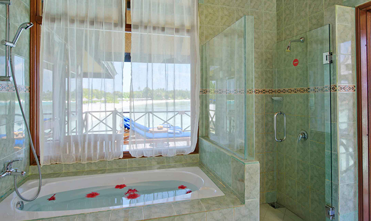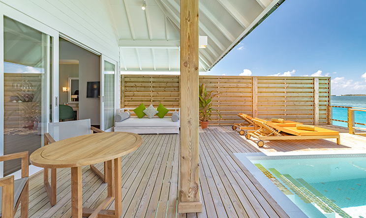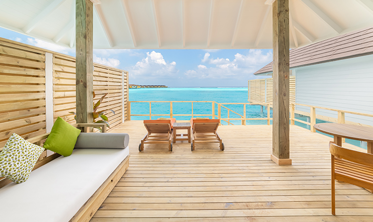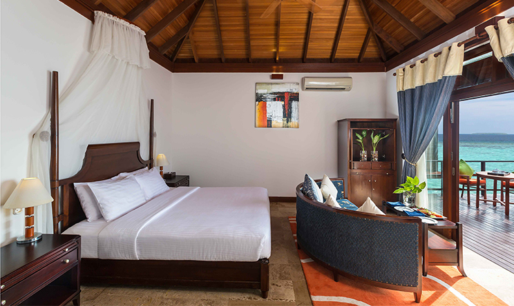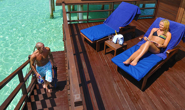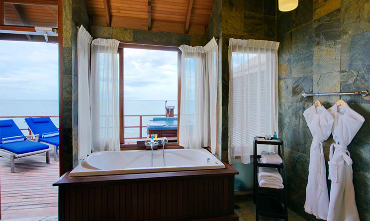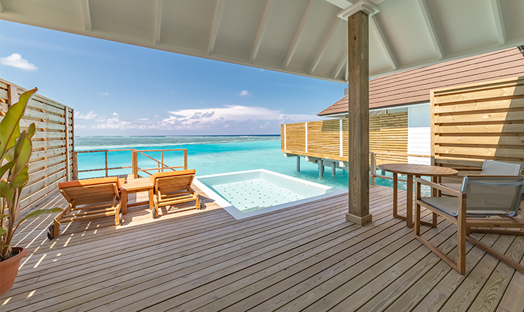 尊贵的带按摩浴缸的水上别墅独特的舒适环境中放松身心,享受完全的隐私。您可以在宽敞的私人日光浴平台上享受私人按摩浴缸,别墅提供豪华的独立起居室,配有舒适的沙发床,可在室内享受宁静的氛围。非常适合情侣在马尔代夫度蜜月或浪漫之旅。