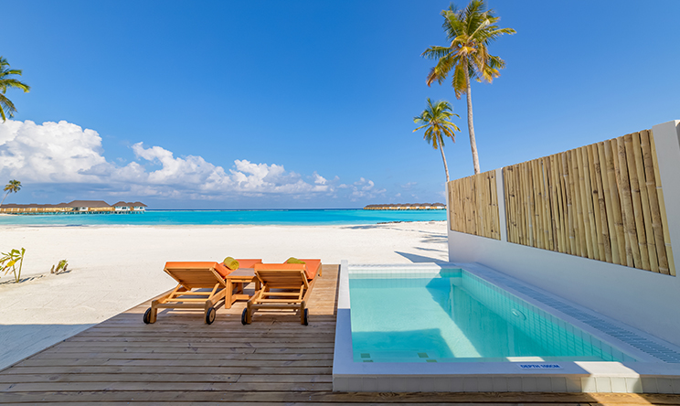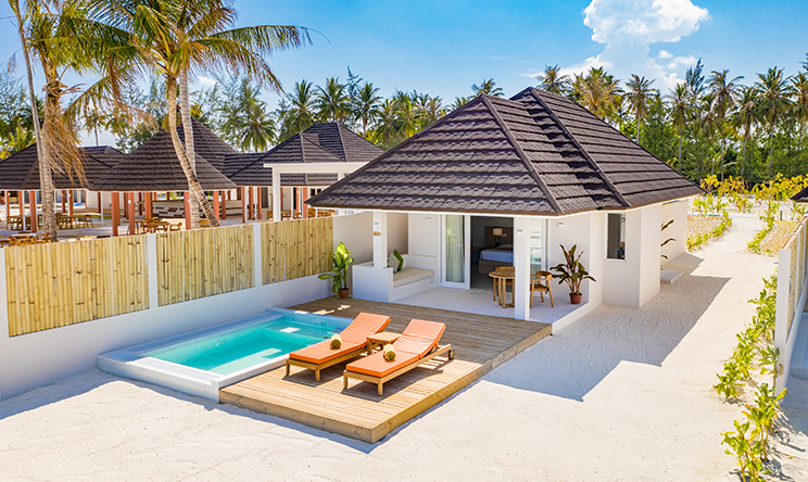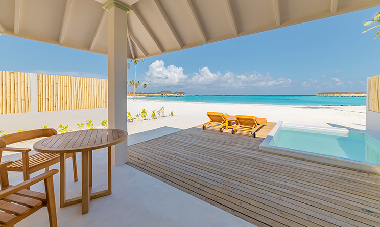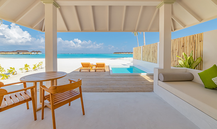 从大窗户和阳台上,可以捕捉到印度洋的生动景色。拥有宽敞的内部空间和多张沙发床,是您游览马尔代夫度假的理想场所。您可以在室外私人游泳池休息,欣赏马尔代夫的阳光。在周到的设施和平静的室内设计内,将营造出宁静而私密的隐蔽之所。