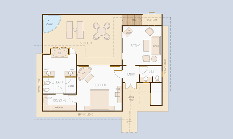 | 水Prestige Jacuzzi Water Villas--尊贵水上别墅(带按摩浴缸) | 5 | 123平 | X | 2大 |