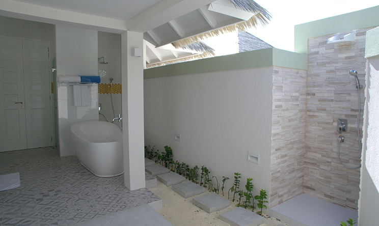 新岛水屋的条件比沙屋好很多,有浴缸,但是我们有间水屋浴缸花洒有漏水,不过我们也没叫他们修。