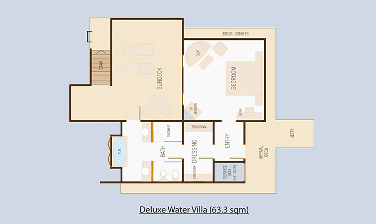 | 水Deluxe Water Villas--豪华水上别墅 | 21 | 63.3平 | X | 2大1小(7岁以上) / 3大 |