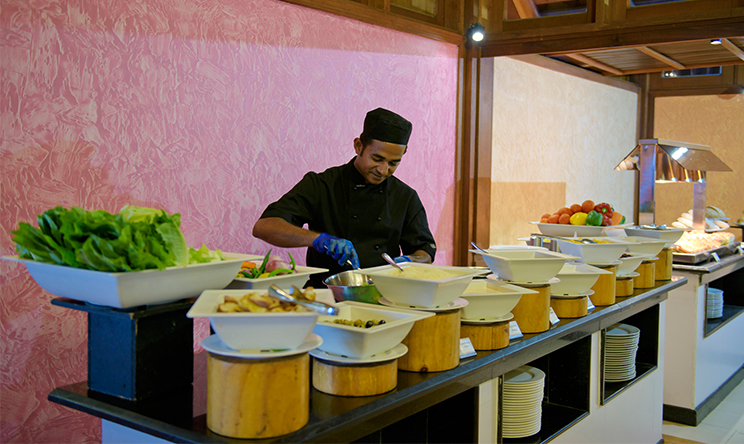 — 在主餐厅提供丰富的自助早餐。对于入住Jacuzzi water villa,honeymoon water villa,sunset water villas & Presidential suite 的客人,早餐可以在Four spices餐厅就餐