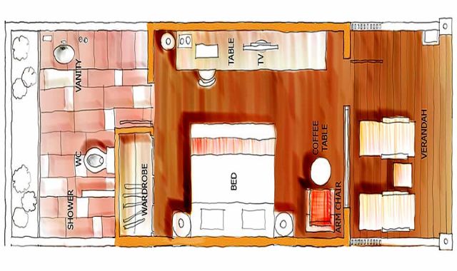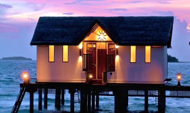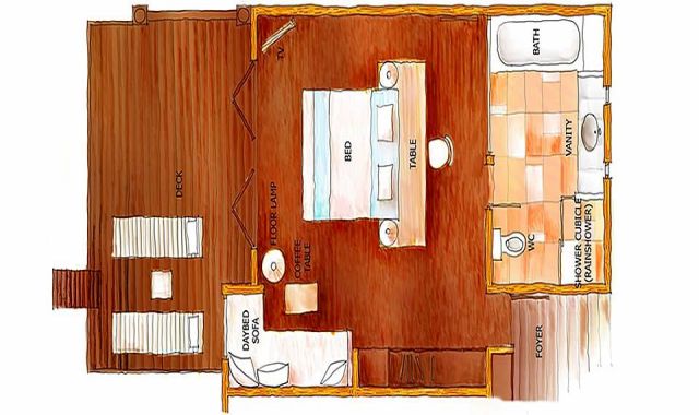 房型介绍:坐落在清澈的水中礁湖上,专为海洋爱好者准备。每个水上屋都有一个客厅阳台,直接到达泻湖,在水上屋可以直接欣赏到热带海景。