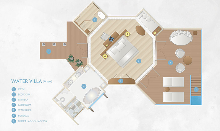 水上水疗中心面对着泻湖,其灵感来自自然,旨在创造一个和平和令人耳目一新的避风港。精心挑选的水疗菜单结合了来自印度尼西亚、泰国和印度的按摩疗法,丰富面部和刺激身体护理以恢复内心的和谐。
