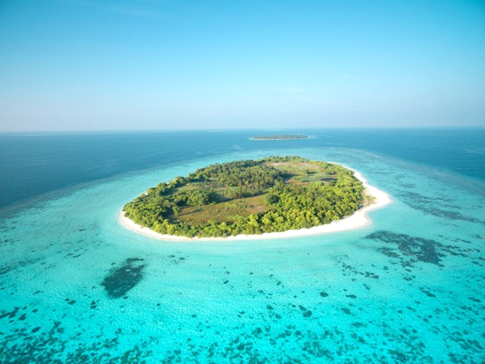 ②. 岛屿有一个小型的沙滩拖尾,岛屿周边多个无人岛;