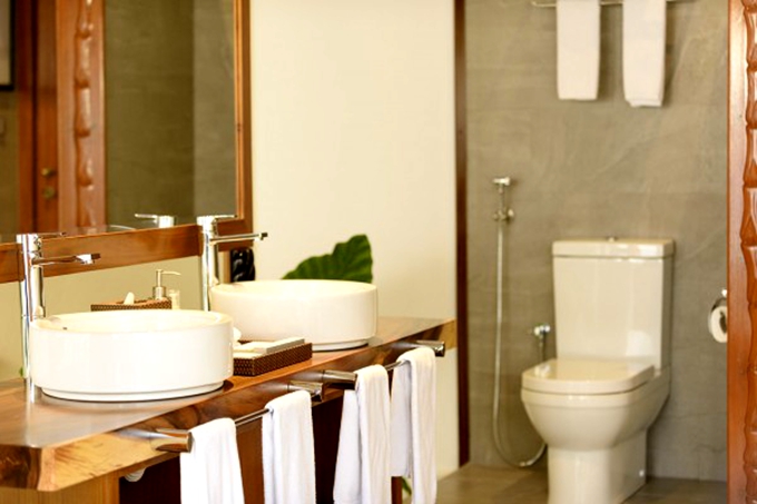 30个海滩别墅都有看见惊人的美景。都可以直达海滩。在这儿你可以选择体验Boaku拖尾沙滩的宁静,也可以感受Veli沙滩壮丽的景色。每一个别墅都有一个半露天的户外浴室。每间客房都通向设有私人花园的自己的阳台,享有海滩和泻湖的景色。 boaku是日出侧,veli是日落侧。