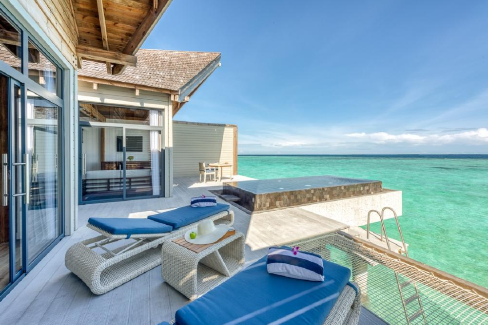 水上泳池别墅带给您的不仅是豪华住宿体验,还有近在咫尺、令人惊叹的碧蓝泻湖美景。位于户外露台上的私人小泳池可让您畅享时尚放松方式。铺设玻璃地板,透过玻璃地板可看到下面的热带生物。这些别墅设有一间特大床或双床卧室,均配备令人放松的记忆海绵床垫,是失眠者的完美选择。落地窗外是户外淋浴和独立浴缸,尽显奢华。室内配备 55 英寸液晶电视、迷你酒吧、酒窖以及滴滤式咖啡机煮制的瑞享咖啡,皆为您放松身心的绝佳之选。