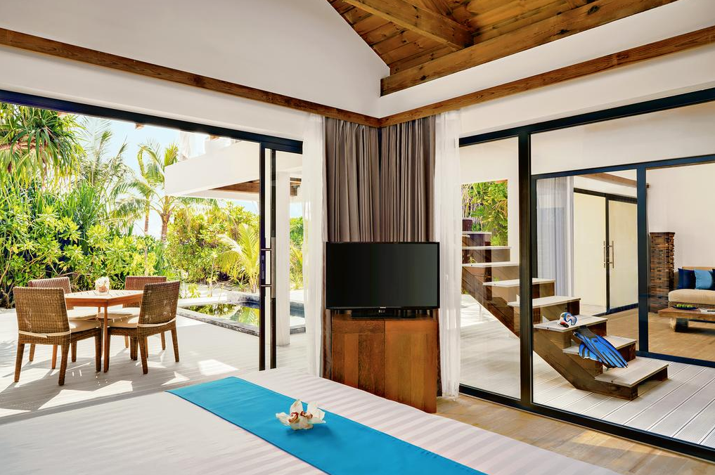 水上泳池别墅带给您的不仅是豪华住宿体验,还有近在咫尺、令人惊叹的碧蓝泻湖美景。位于户外露台上的私人小泳池可让您畅享时尚放松方式。铺设玻璃地板,透过玻璃地板可看到下面的热带生物。这些别墅设有一间特大床或双床卧室,均配备令人放松的记忆海绵床垫,是失眠者的完美选择。落地窗外是户外淋浴和独立浴缸,尽显奢华。室内配备 55 英寸液晶电视、迷你酒吧、酒窖以及滴滤式咖啡机煮制的瑞享咖啡,皆为您放松身心的绝佳之选。