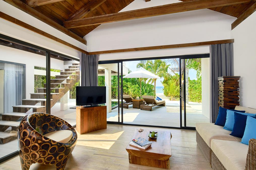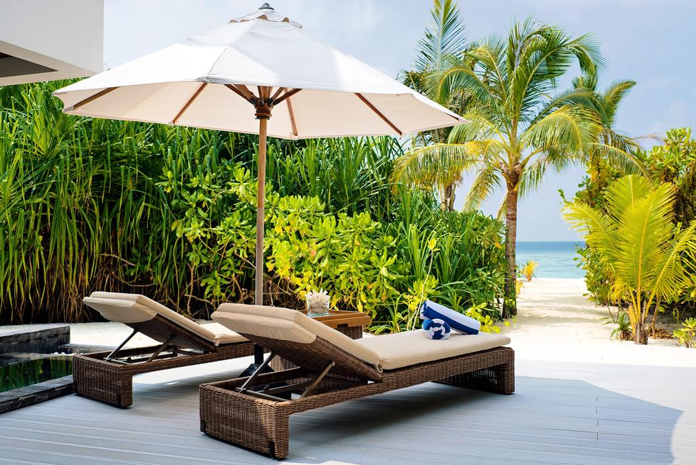 环绕套房的热带花园是放松身心、休养生息的宁静天堂。户外空间尤其诱人,设有日光躺椅、私人泳池以及高台上配备豆袋懒人沙发的凉亭。这里是欣赏印度洋美景的完美之所。套房设有一间大卧室,配备特大床及记忆海绵床垫。起居室里的大沙发床可用作床铺以容纳更多客人。客人们可坐享 55 英寸和 49 英寸液晶电视、酒窖以及滴滤式咖啡机煮制的瑞享咖啡。还可免费无线上网。豪华浴室配备独立浴缸、迷人户外淋浴和高档卫浴产品。另配备浴袍和吹风机,为客人带来更多便利。空调和客房内保险箱带来舒适与安全。 空调和室内安全提供舒适和安全。海滩泳池套房可容纳3名成人或2名成人和2名儿童(12岁以下)。