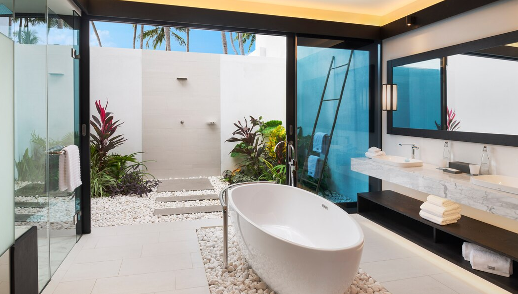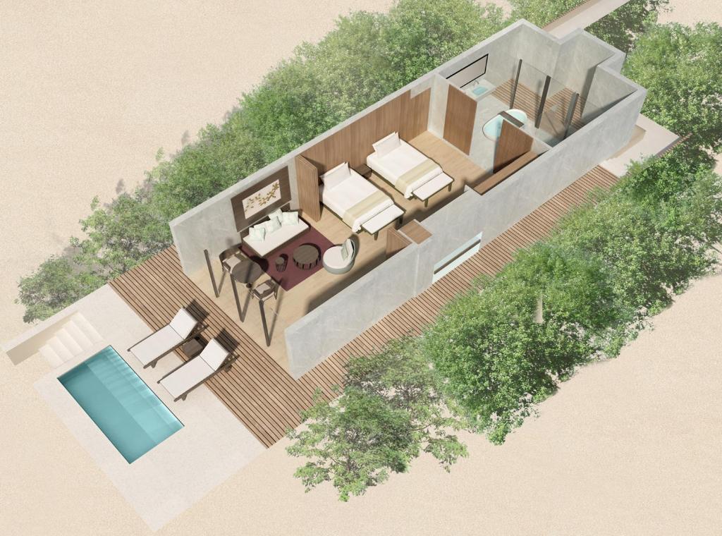 独具威斯汀风格的岛上别墅,房型设计舒适高级,所有内部装饰用料考究,形成天然的舒适感,别墅带有私人泳池,随着泳池一眼望去是令人窒息的漂亮印度洋海景。