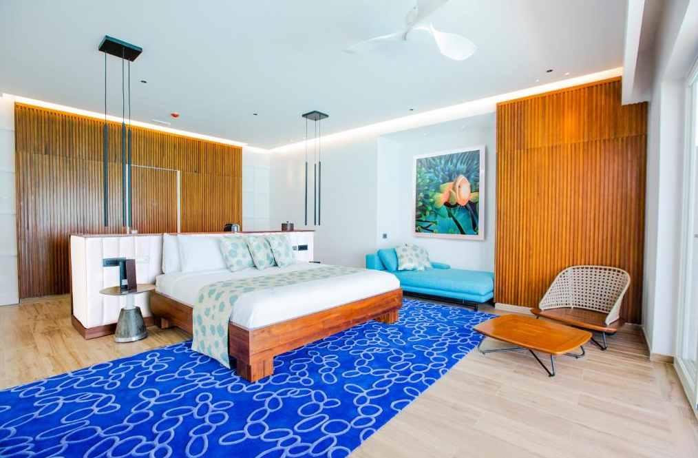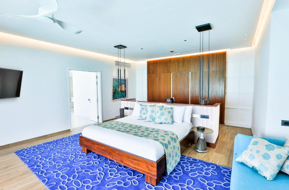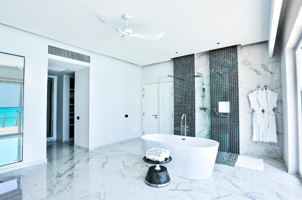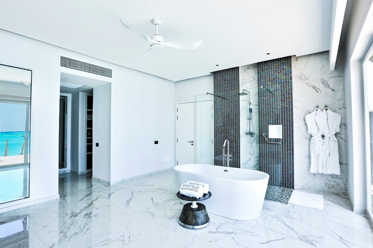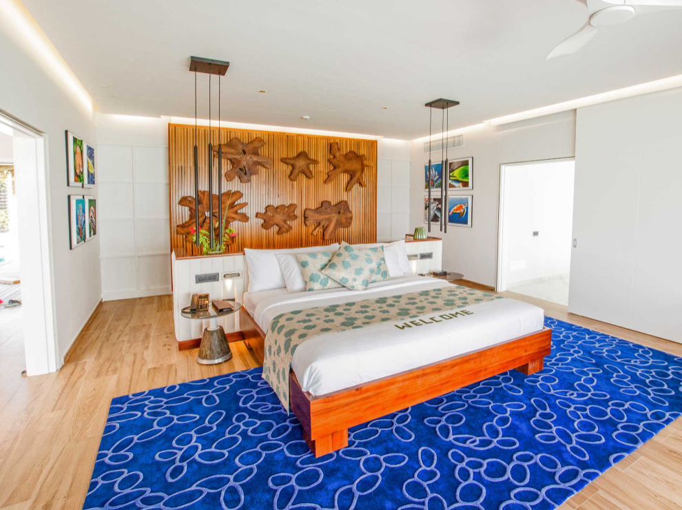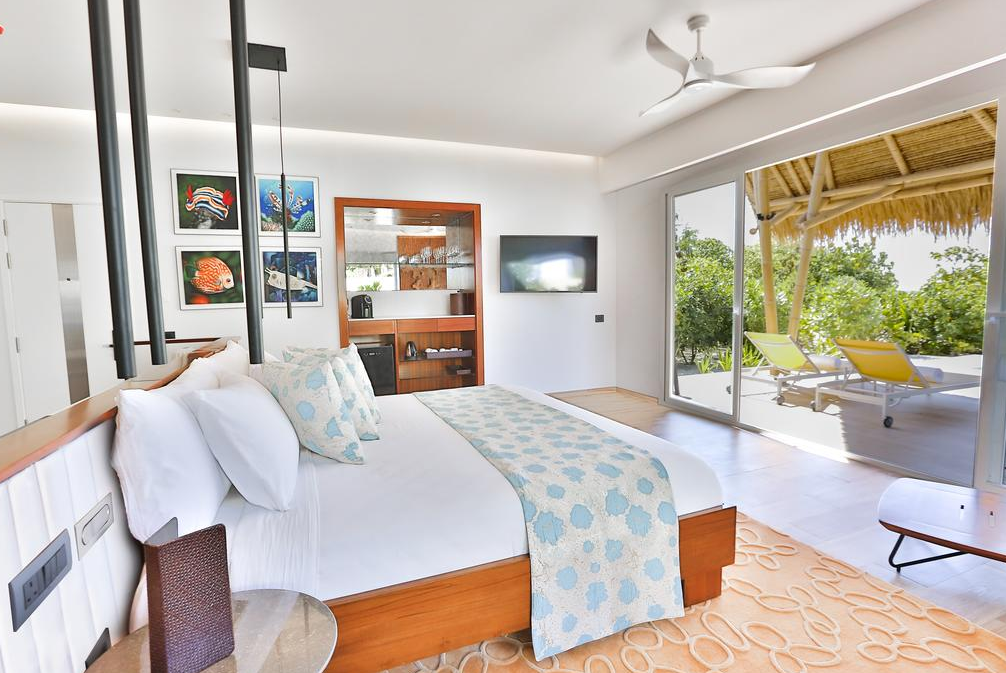 总统套房海洋别墅,522平米,海景 距珊瑚礁几步之遥,小厨房 衣帽间,2卧室,阴凉区,私人泳池。 总统套房海洋别墅,2卧室,一个休息区,一个酒吧,一间厨房,一间管家房,距珊瑚礁几步之遥。私人阴凉区供您享受海洋美景并可从别墅内直接入海,衣帽间,免费迷你小冰箱,茶&咖啡设备,保险箱,卫星电视,空调,室内及室外淋浴,室外花园浴缸间,双洗脸盆,独立卫生间。现代简约装潢风格。